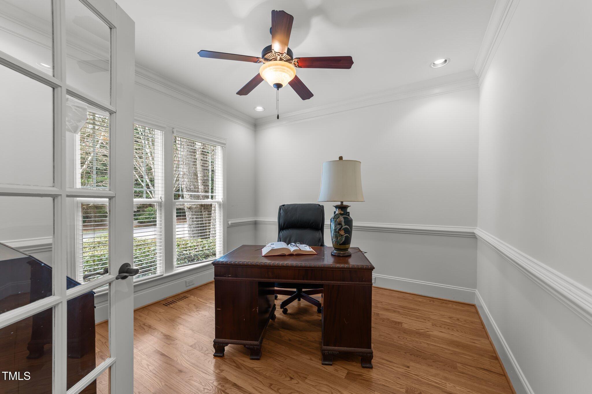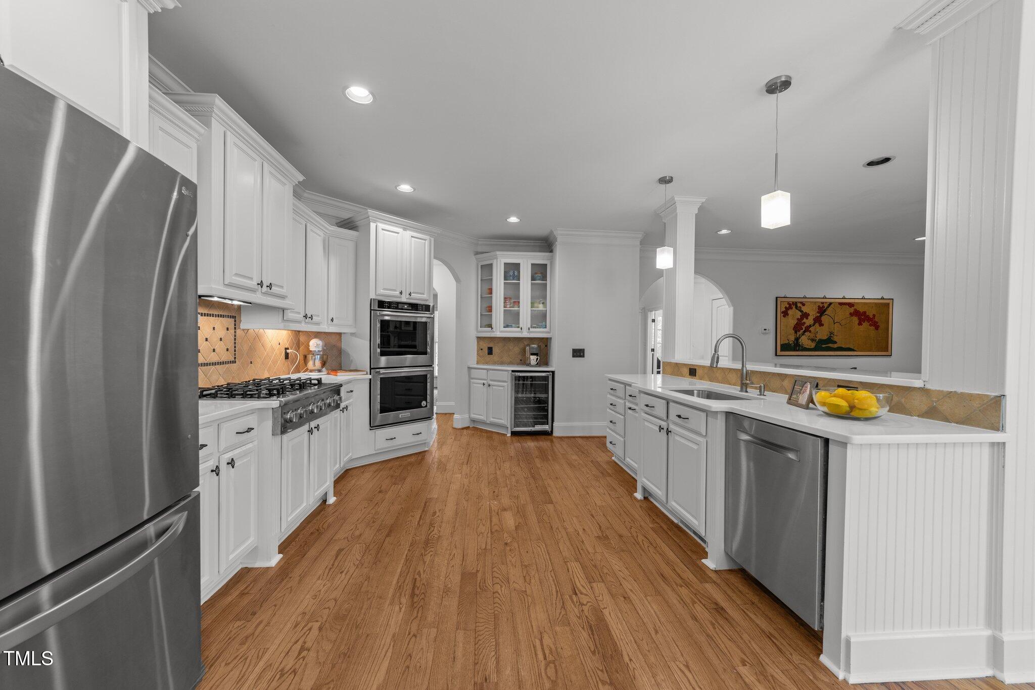 Welcome to your next home. Perfectly situated in north Raleigh, between the inner belt line and outer belt line - any commute is a breeze! Only minutes to downtown Raleigh or the RDU airport. Custom-built by Tuscany Construction, your will discover special details every where you look. Site finished hardwoods, rounded drywall corners, tray ceilings, built-in shelving, 2 fireplaces & more. The kitchen features white cabinets, gas range, wall ovens, quartz countertops and walk in pantry. Fresh interior paint and carpet in many locations. The first floor plan includes a home office AND a first floor guest bedroom suite. Second floor has three bedrooms, bonus room/bedroom and walk in attic storage. Third floor is it's own private space with full bathroom, bonus room and bedroom. There are 3 parking spaces in the garage. Enjoy the covered front porch and the covered back porch, plus a patio and fenced yard. This quiet and friendly street is the perfect place to call home.