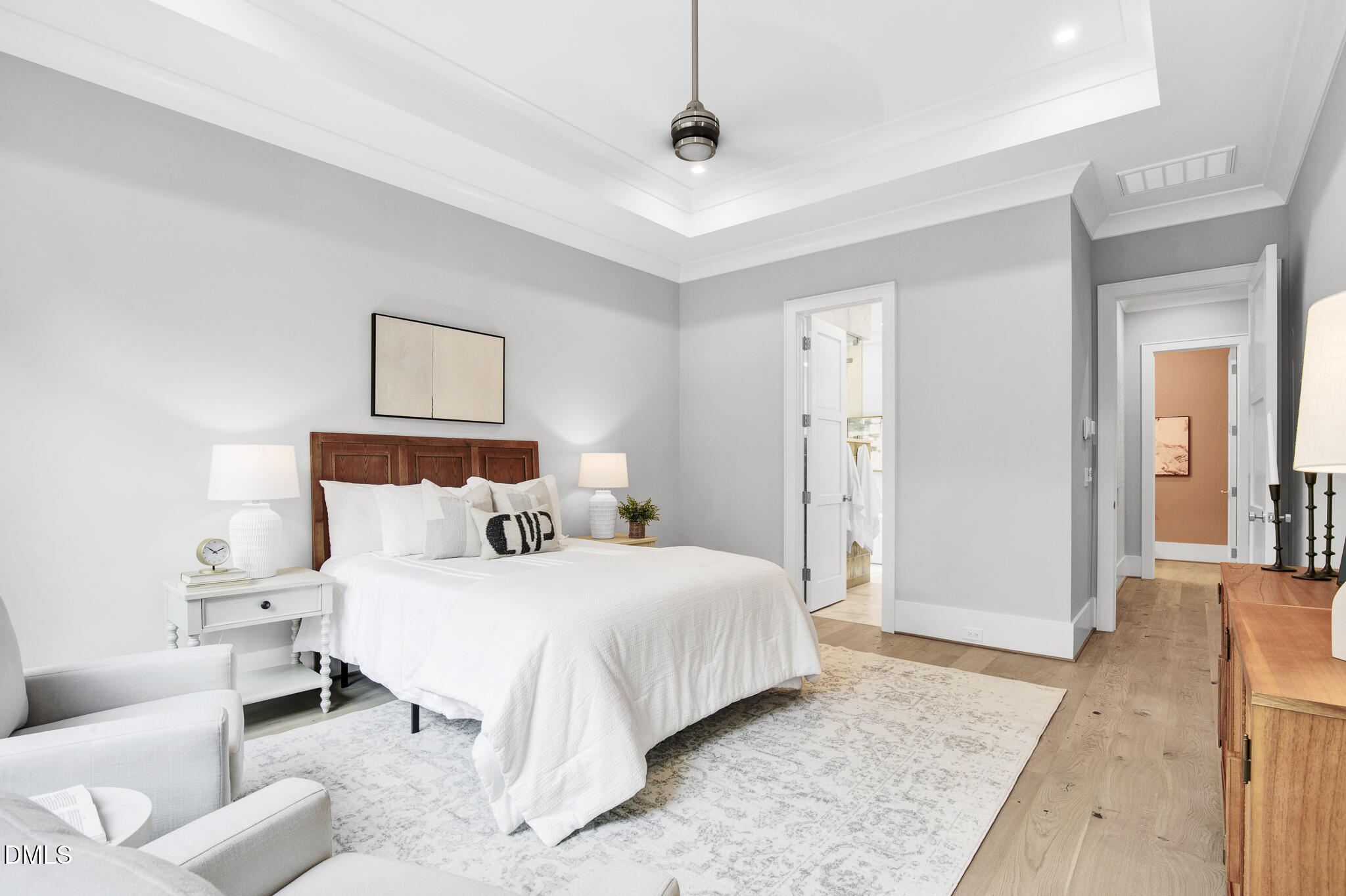 Inside, sunlight pours through generous windows, illuminating refined yet welcoming living spaces designed for both celebration and stillness. The main level offers the ease of first-floor living, anchored by a serene primary suite that feels like a private haven. A secondary ensuite bedroom provides elegant accommodation for guests or extended family -- ideal for multi-generational living without compromise.