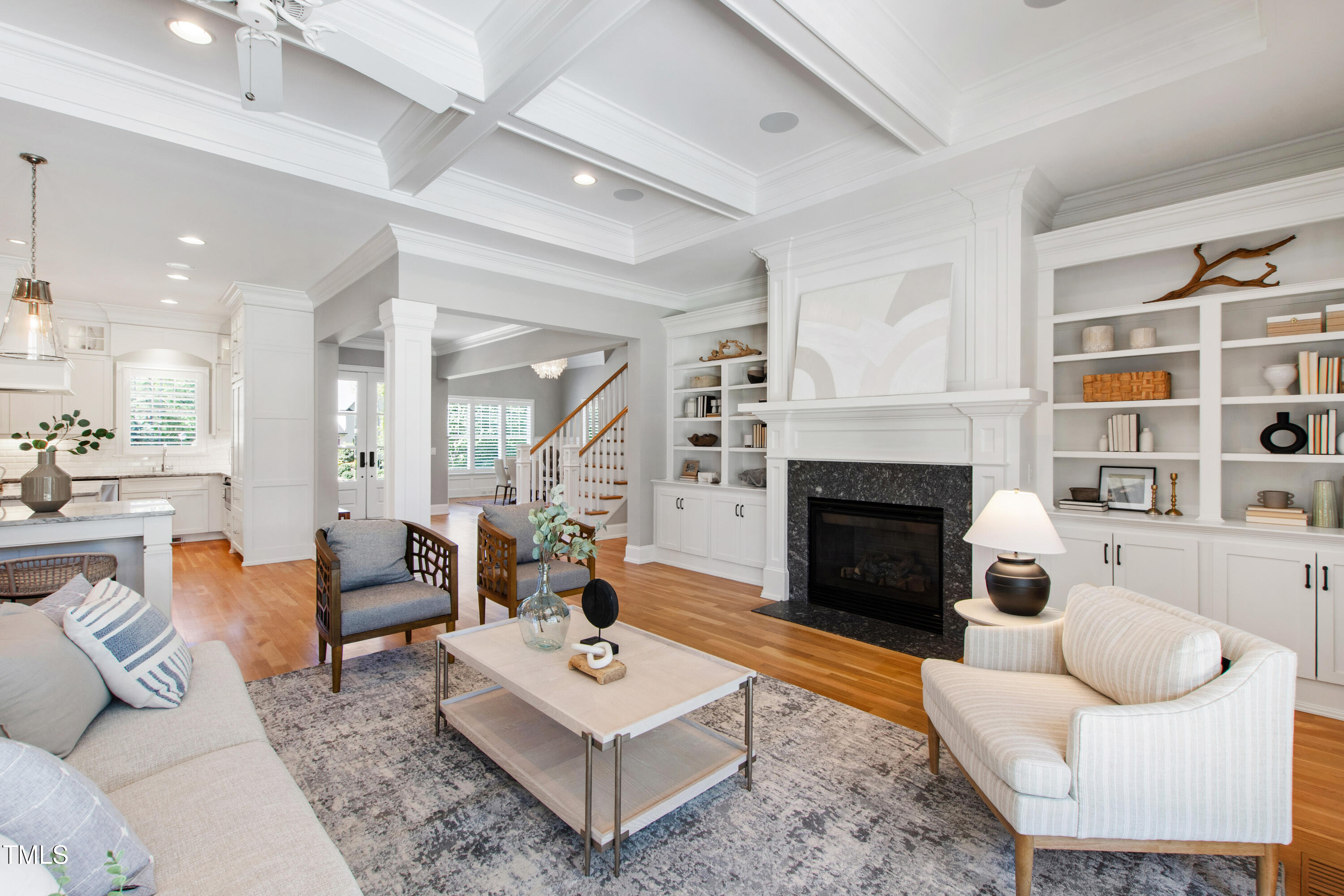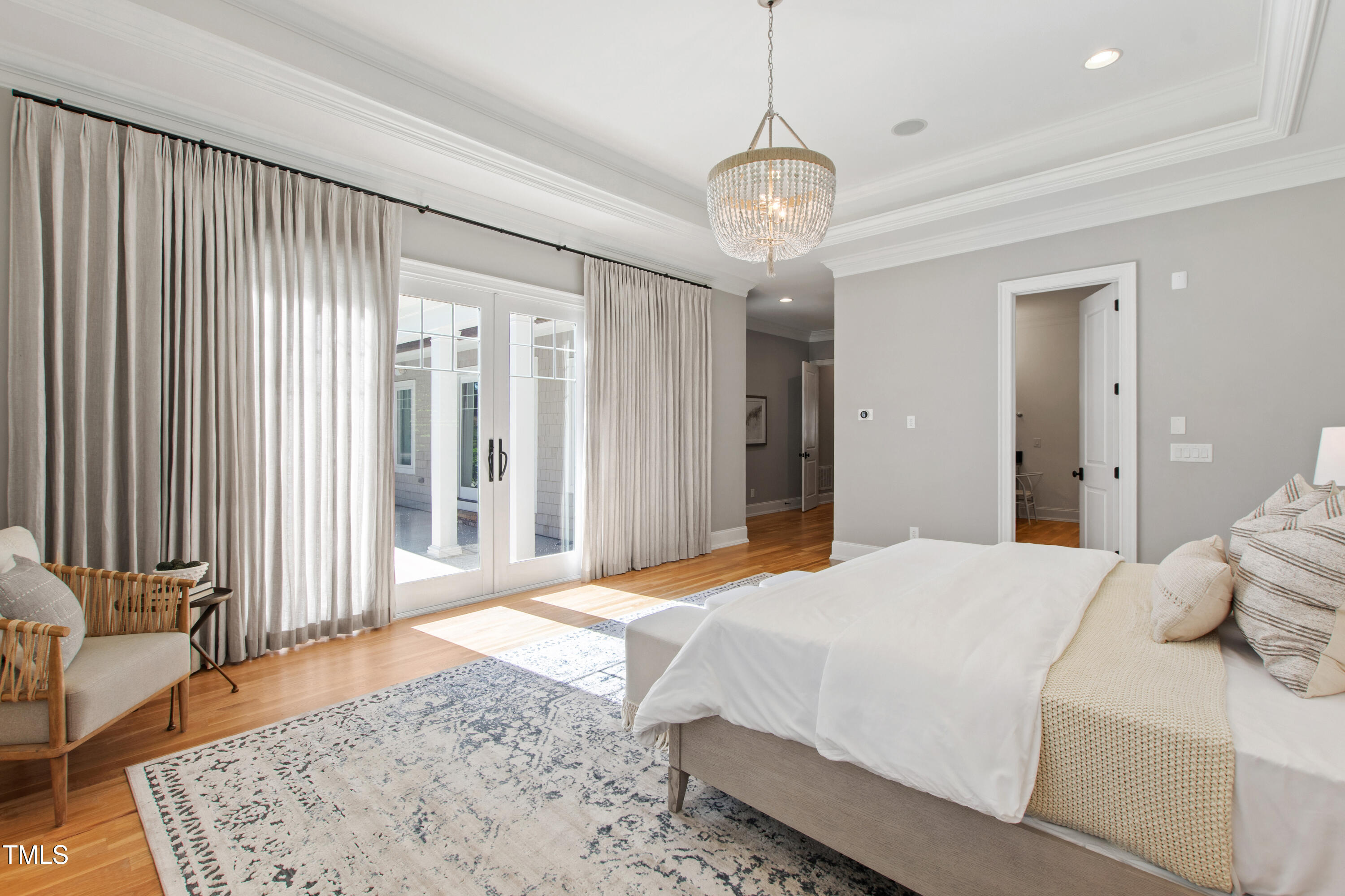 Nestled on a private 1.28-acre cul-de-sac lot in the coveted Colvard Farms community this stunning Cape Cod coastal-style retreat, custom built by Loyd Builders, offers a perfect blend of elegance and comfort. Step inside to a light-filled, open floor plan with white oak hardwood floors throughout. A gracious entry foyer welcomes you, leading to a beautiful dining room with a vaulted beadboard ceiling, evoking relaxed coastal charm. The chef's kitchen is a dream, featuring top-of-the-line Wolf, Sub-Zero, and Bosch appliances, a spacious center island, and two dishwashers--ideal for effortless entertaining. Adjacent to the kitchen are a mudroom with a drop zone, a built-in home office nook, and a large laundry room with extra storage. The main-floor primary suite is a private sanctuary, complete with a luxurious spa-like bath and an expansive walk-in closet. All secondary bedrooms have en-suite baths and generous closets, ensuring comfort for family and guests. For those needing more space, the unfinished walk-up third-floor attic offers over 1,300 square feet of potential for expansion or storage. A second unfinished walk-in storage space on the second level offers added convenience. Outside, the cozy screened porch with a stone floor and fireplace flows seamlessly to the heated saltwater pool, spa, and patio, all set within a fenced backyard. This home also features a three-car garage with extra guest parking and is conveniently located near Southpoint Mall, Highway 751, I-40, RDU, and the Research Triangle, providing easy access to shopping, dining, major corridors, and the airport. It is also within close proximity to both Duke and UNC, offering the best of Durham and Chapel Hill. Outdoor enthusiasts will appreciate the nearby American Tobacco Trail, Jordan Lake and miles of walking trails within the community. Residents of Colvard Farms also enjoy access to a community fitness center and pool plus tennis/pickleball courts. Experience everyday luxury in this exceptional, one-of-a-kind home!