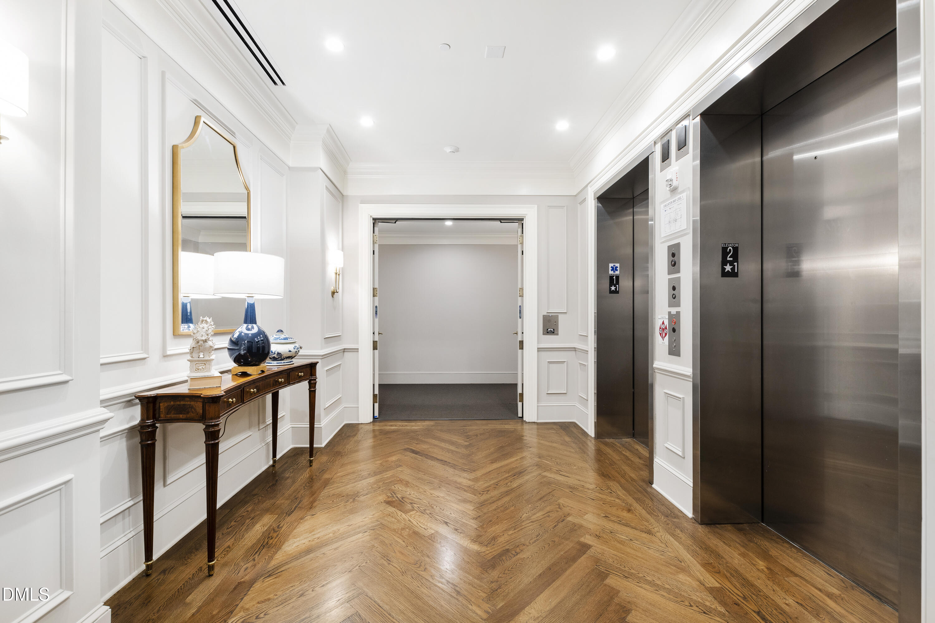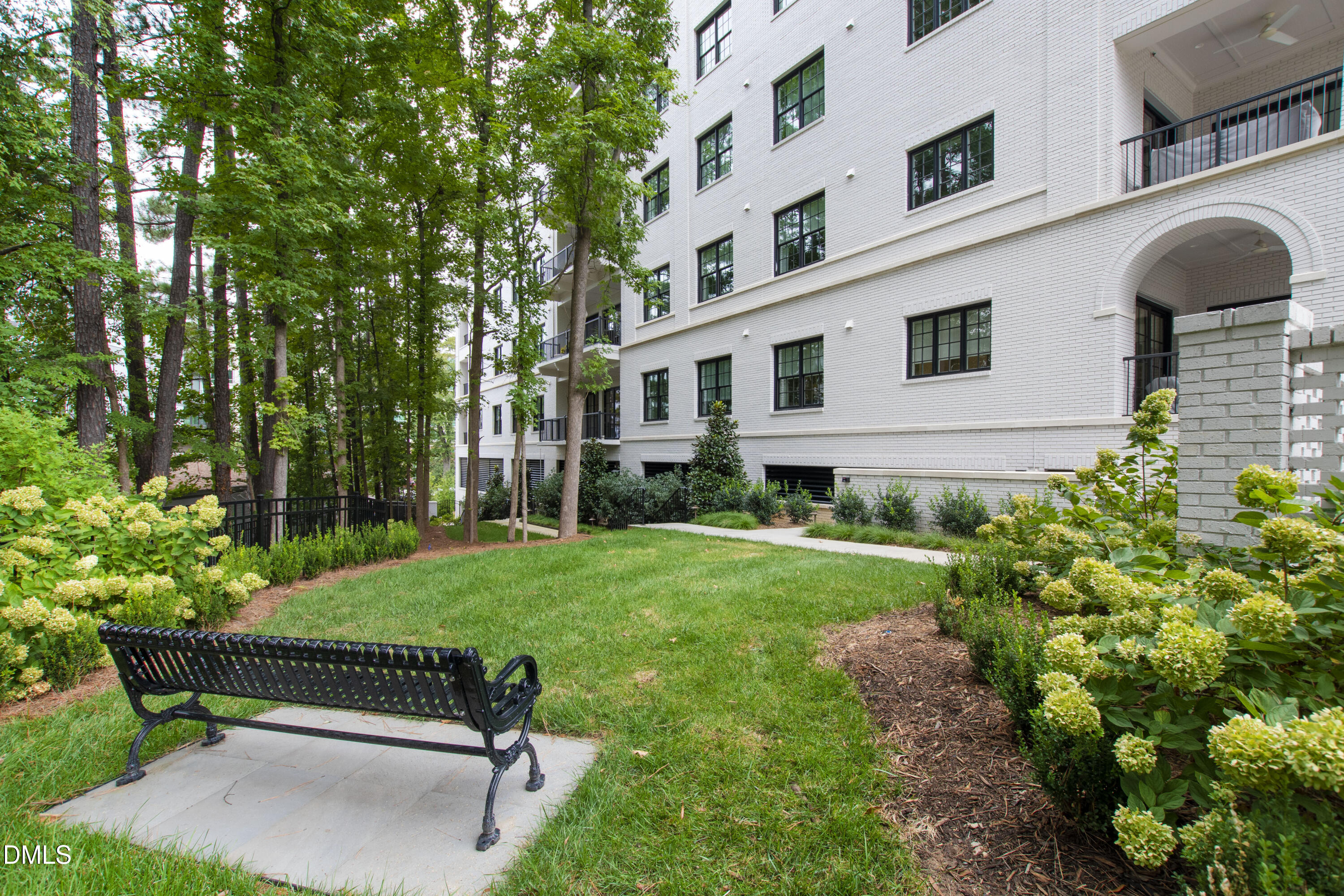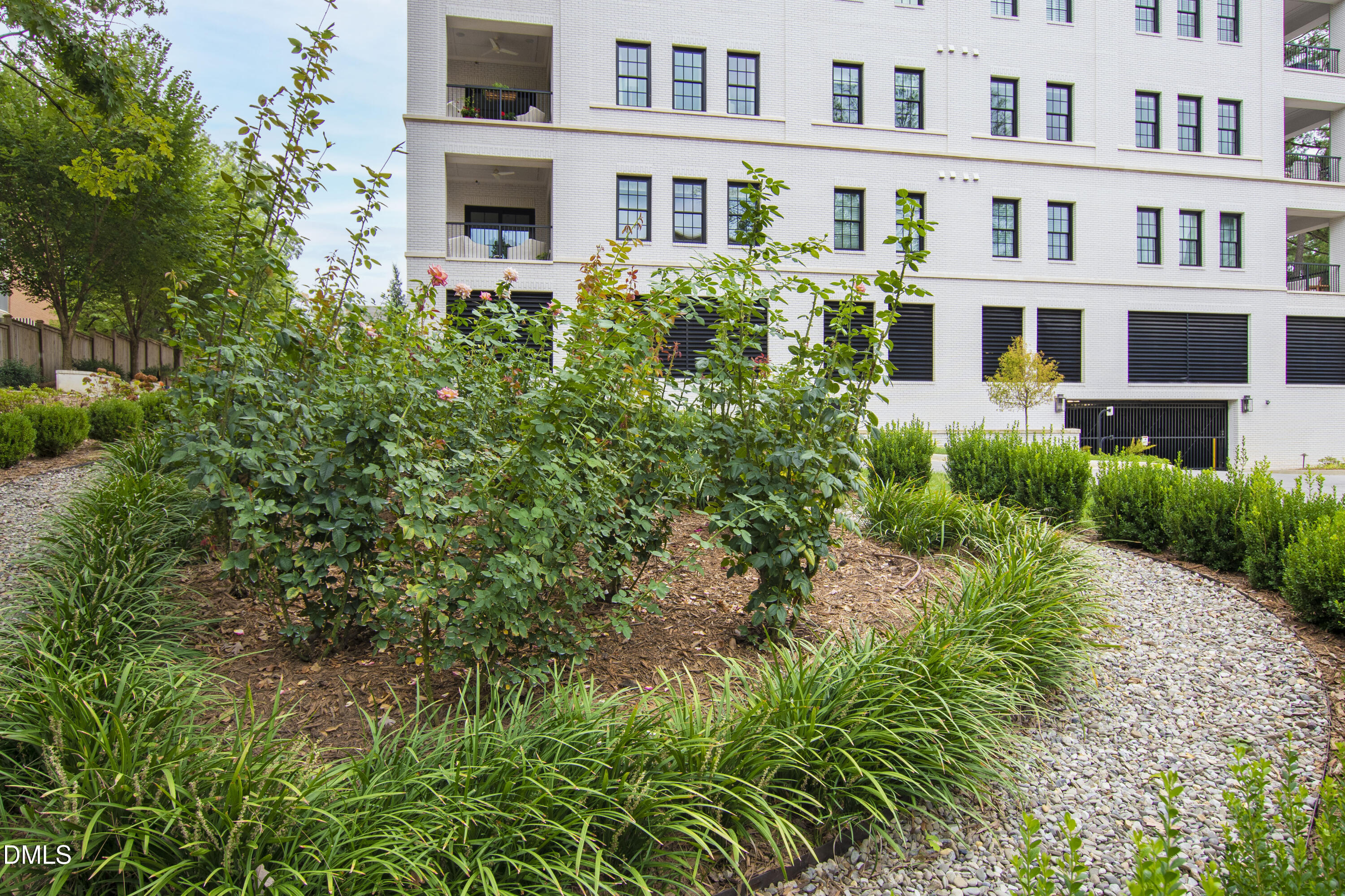 Nestled on the first floor in the back section of The Wade, this luxurious one-level residence offers a perfect blend of elegance and comfort. Freshly painted and ready for new owners, this home features three spacious bedrooms and two and a half bathrooms and an open-concept design ideal for modern living. The gourmet kitchen is a chef's dream, complete with a large quartz island, premium appliances, and seamless flow into the family and dining areas, perfect for entertaining or relaxing in style. A large gas log fireplace, beautiful mill work, and site-finished hardwood floors enhance the home's sophisticated character. Step outside to your private balcony and enjoy peaceful views, making this exquisite home a true sanctuary in one of the most desirable neighborhoods in Raleigh. Building amenities include a large gathering room, an exercise room, a gorgeous roof-top terrace as well as a rose-cutting garden. In addition, there is conditioned private storage just steps from your front door and assigned parking in the covered parking garage.