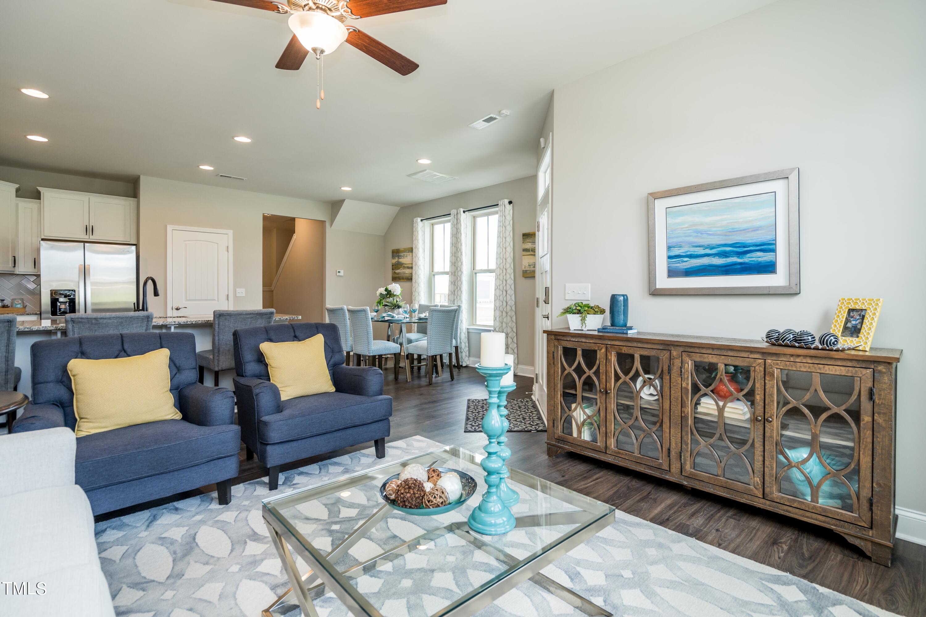 This END UNIT Winchester Plan is a 2-story open concept, 3 bedrooms, 2.5 bath townhome, w/ 1 car rear entry garage. The spacious family room w/ 9ft ceilings opens to the kitchen w/ granite countertops & island, upgraded cabinets, SS appliances & eat in dining, . Large Owners Suite w/ walk in closet, sitting area, bathroom w/dual vanity, quartz countertops & walk in shower. Luxury Plank flooring throughout the main living area, all baths & laundry. Convenient to shopping, dining, & walking trails. Prime location just 15 Minutes from DT Raleigh!