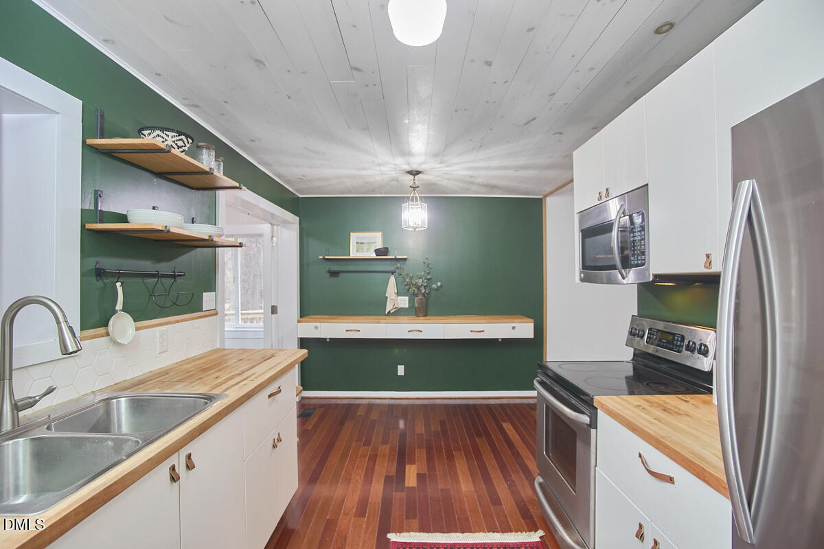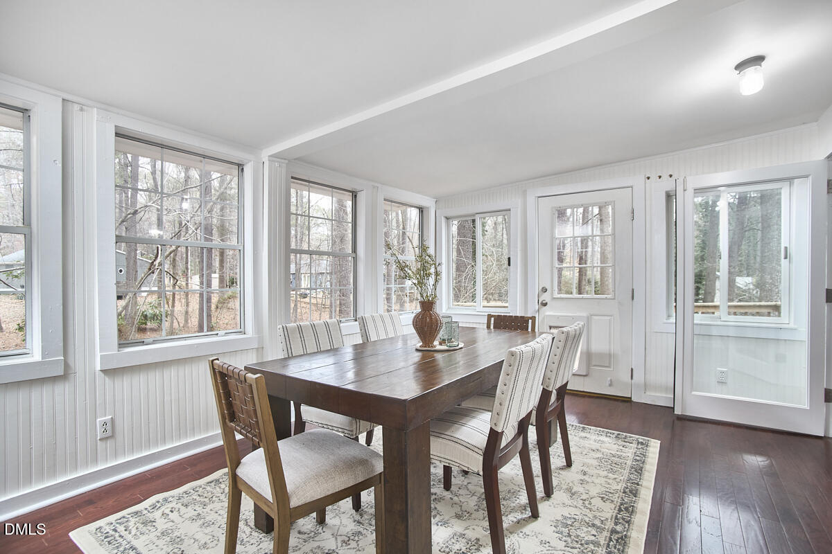 OFFER DEADLINE - Sunday May 8th at NOON! Swept away by Willow Way! For lovers of modernist architecture and forested surroundings, Chatham Development is a dream come true. Whether you are spending time in the fenced front yard hosting friends and neighbors around the fire pit roasting s'mores or opt for the (oh-so-necessary during a NC summer) screened porch instead, the outdoor living this home offers is as lovely as its interior. Vaulted ceilings in the living room adorned with skylights invite in the natural light. A sunroom off of the updated kitchen looks out over the surrounding forest and creek. The spacious primary bedroom offers a roomy walk-in closet and bathroom with stone that makes you feel like you've been transported to the mountains of NC. With a sunroom and storage that are not included in the listed square footage, this home lives much bigger than 1,309 square feet. A ladder off of the hallway between the second and third bedroom leads to a surprisingly roomy attic. It's easy to miss if you aren't looking for it- almost like a secret room! The storage shed is the perfect place to store kayaks for the outdoorsy buyers who want to make the most of owning a home smack dab in between Jordan Lake and the Haw River. There is even a small workshop area in the walk-in crawlspace perfect for a crafty homeowner who needs a little room to make a little mess. You won't find another home quite like this one!