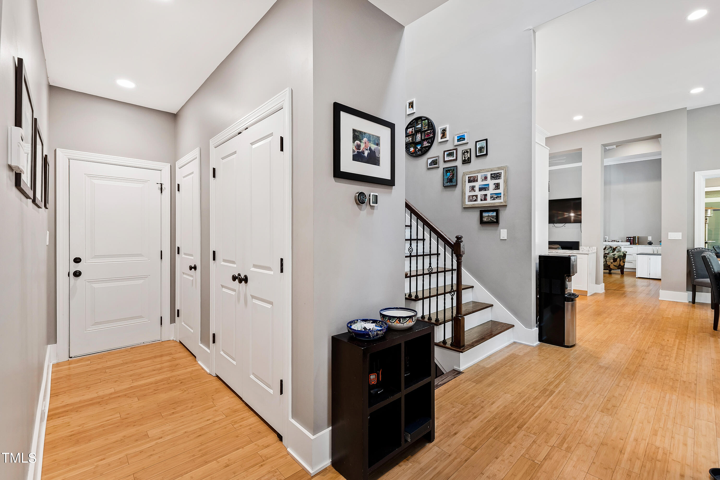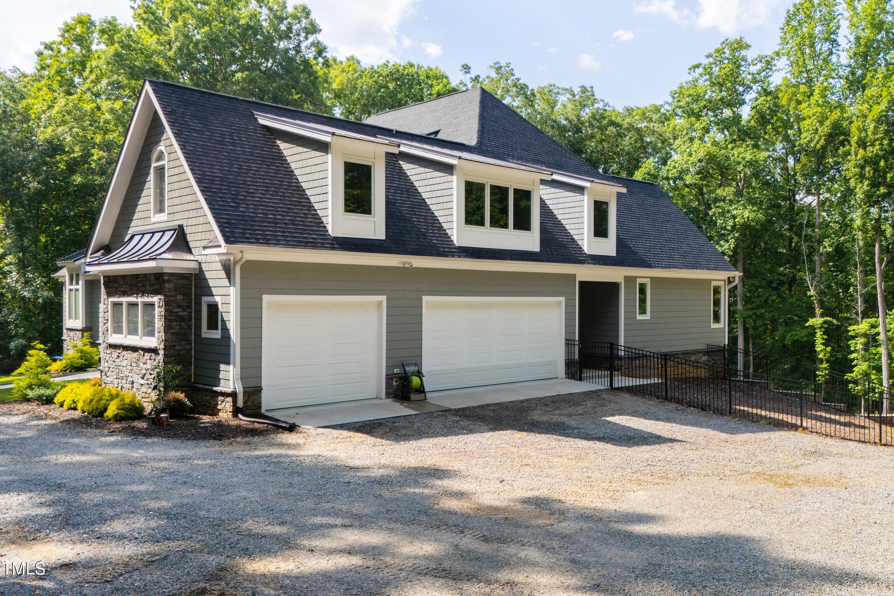 Surrounded by Army Corps of Engineers land and backing to Falls Lake, this stunning home on 1.87 acres offers the ultimate in privacy and sophistication. This amazing property is an ideal choice for those seeking a serene living environment with easy access to city amenities. With 4,008 square feet, this three bedroom/three full bath home is loaded with special details, custom finishes, an open floorplan and great views from every direction. Soaring 14-foot, coffered ceilings and gas log fireplace in the family room provide a welcoming space for family and a wonderful entertaining space. Kitchen boasts high-end appliances, granite countertops and a sunny breakfast room with wet bar. First floor owner's retreat features a luxurious en-suite bath, double walk-in closets and a dedicated office. Showcasing a spa-like ''wet area'', the primary bath is an owner's sanctuary where you'll feel pampered and rejuvenated every day. Over 2,200 square feet in the unfinished basement offers huge potential for added square footage and the septic permit allows for the addition of two bedrooms. In addition to a huge yard space, the covered porch with vaulted ceiling, patios and fire pit set the stage for unparalleled outdoor living at. There's even a fenced area for the pups with easy access from the side door. Car enthusiasts will love the three garage bays on main level and oversized one-car garage on the basement level. Smart home technology allows you to control lights, alarm, HVAC and garage doors from your phone.