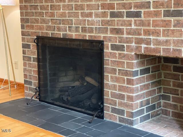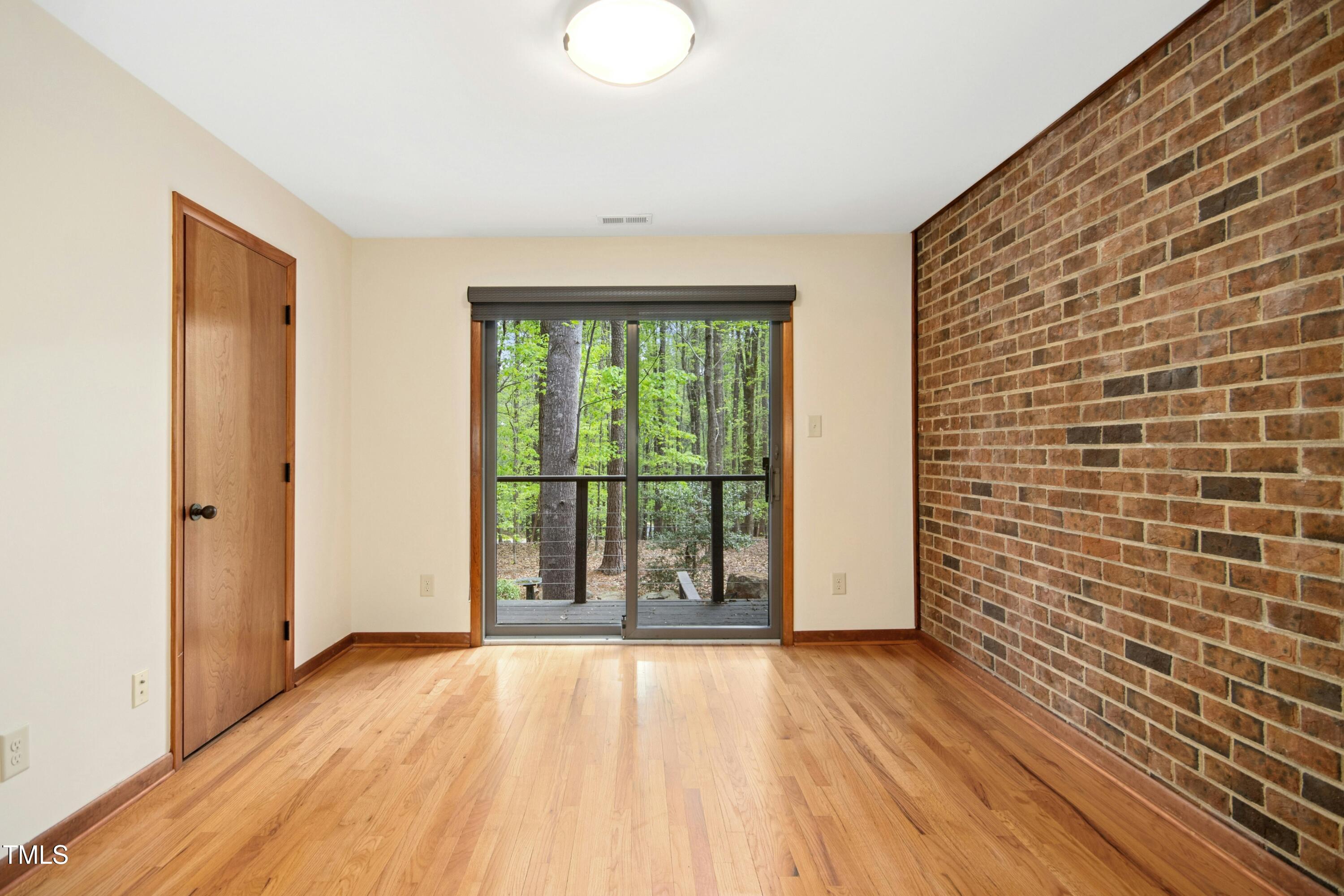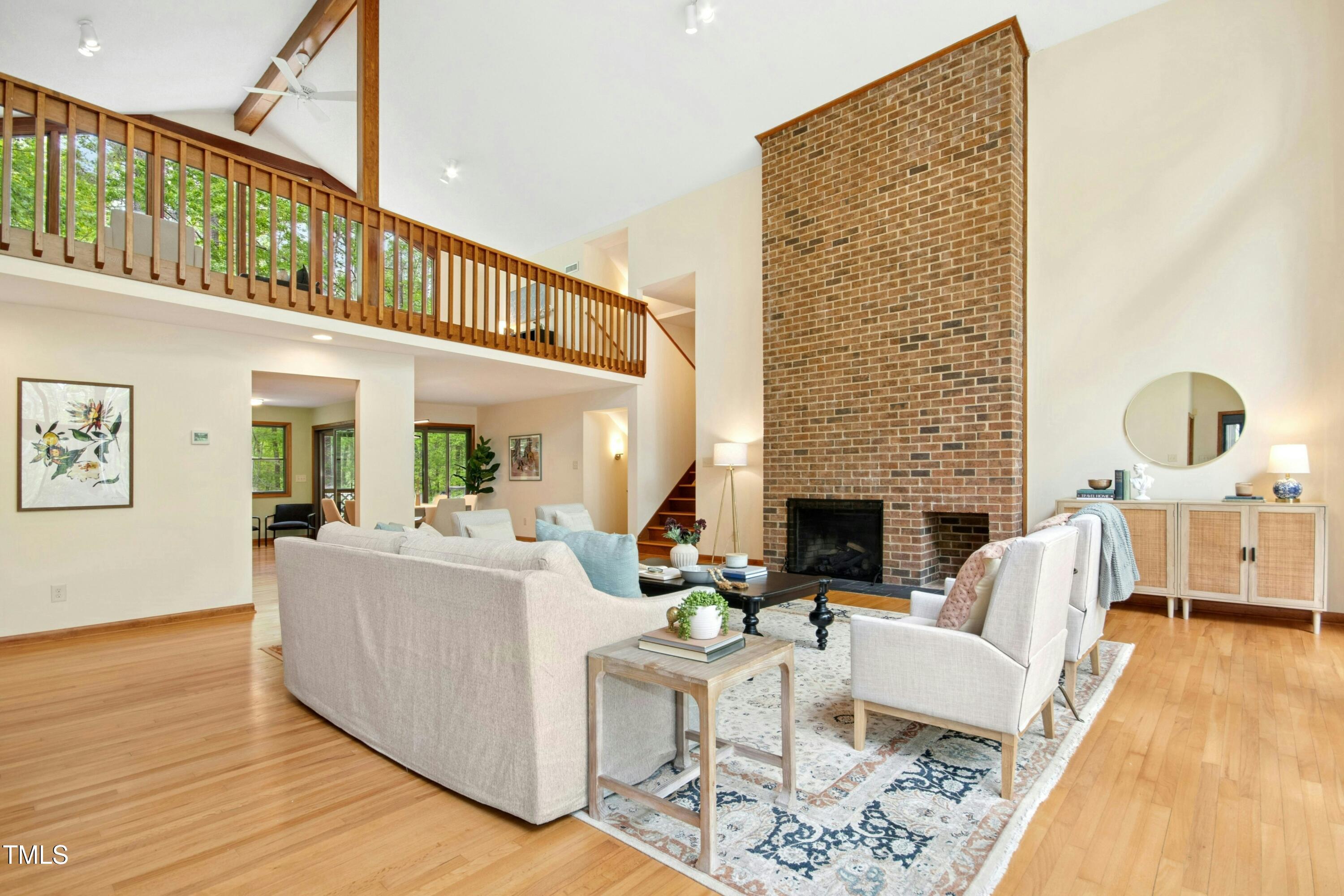 Step inside to a warm foyer that opens to a stunning two-story family room where a soaring brick fireplace with slate hearth anchors the room and floor-to-ceiling windows flood the space with natural light. Sliding glass doors blur the boundaries between indoors and out, inviting the peaceful woodland setting into your daily life and hardwoods flow throughout.
