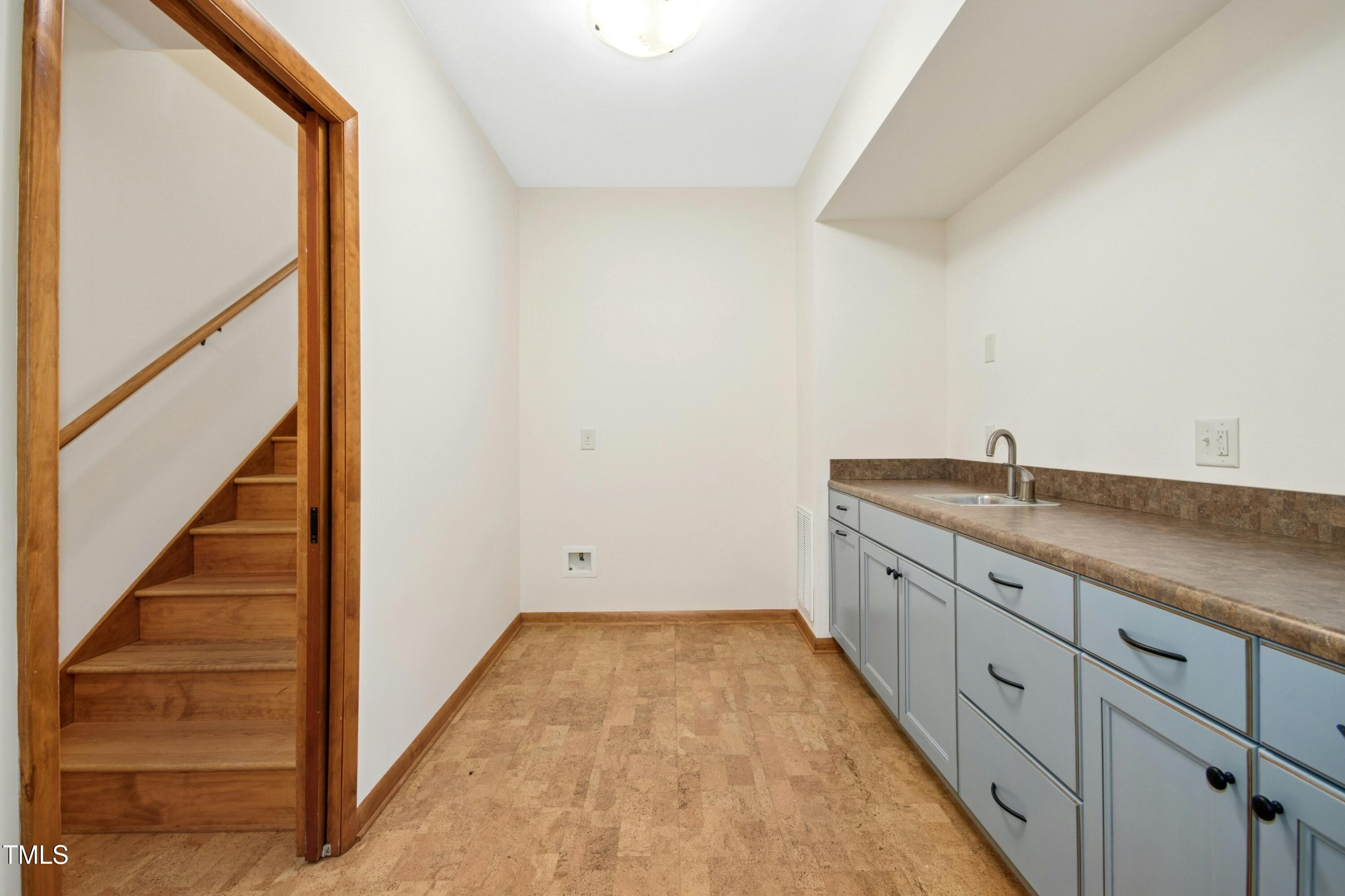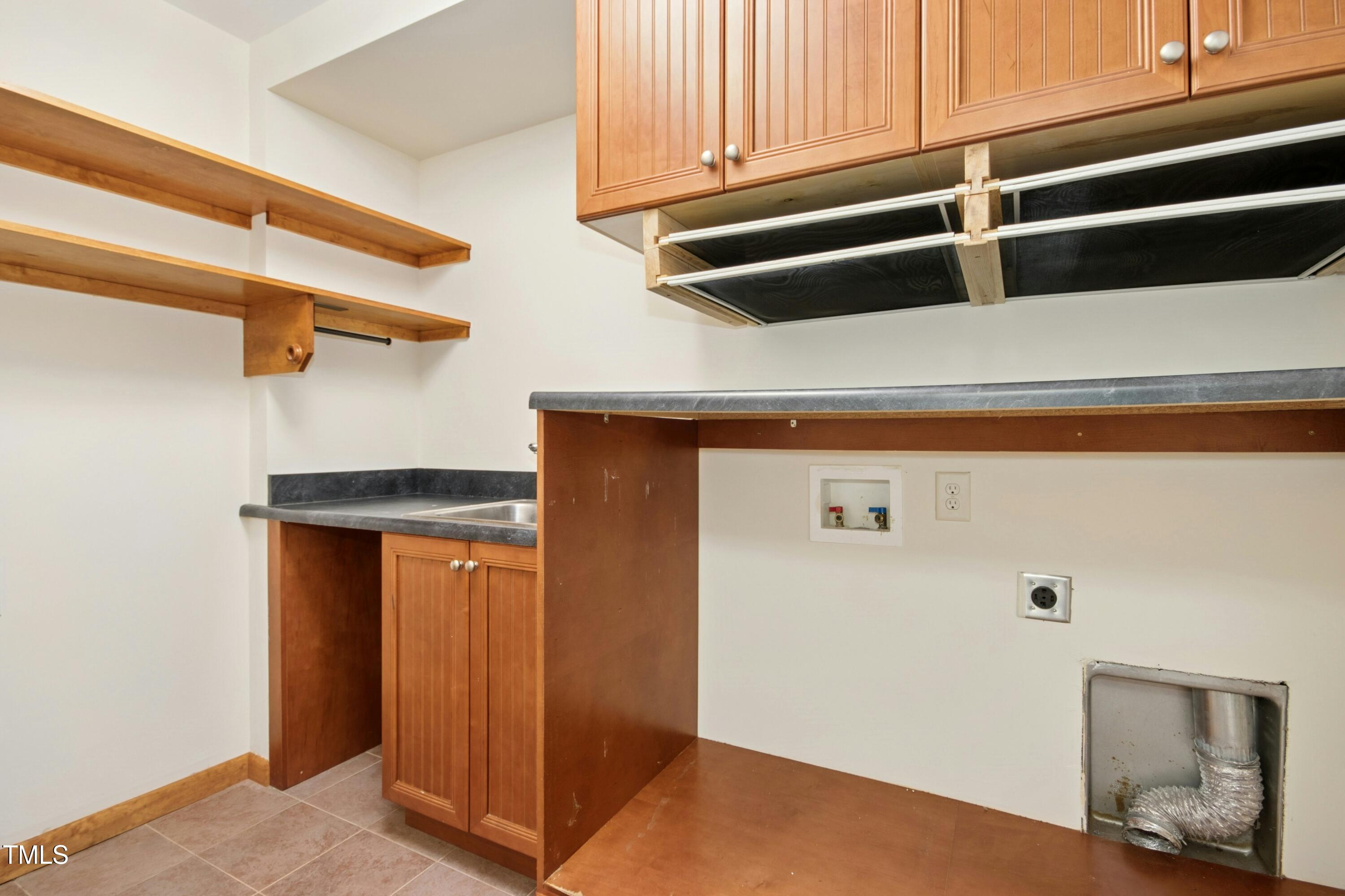 A full-service laundry room with cabinetry, sink, and extensive storage solutions makes daily life effortless, while the finished two-car garage provides ample, organized storage space.