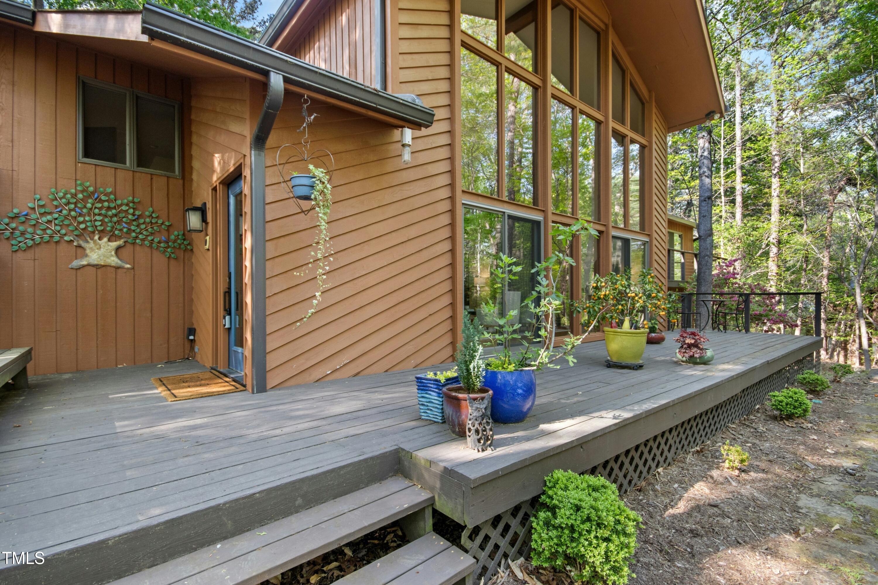Follow the winding driveway through native, mature landscaping to discover your personal retreat set back from the world. A Wrapped low-deck entry welcomes you with morning sunlight, setting the tone for a home designed to celebrate its natural surroundings.