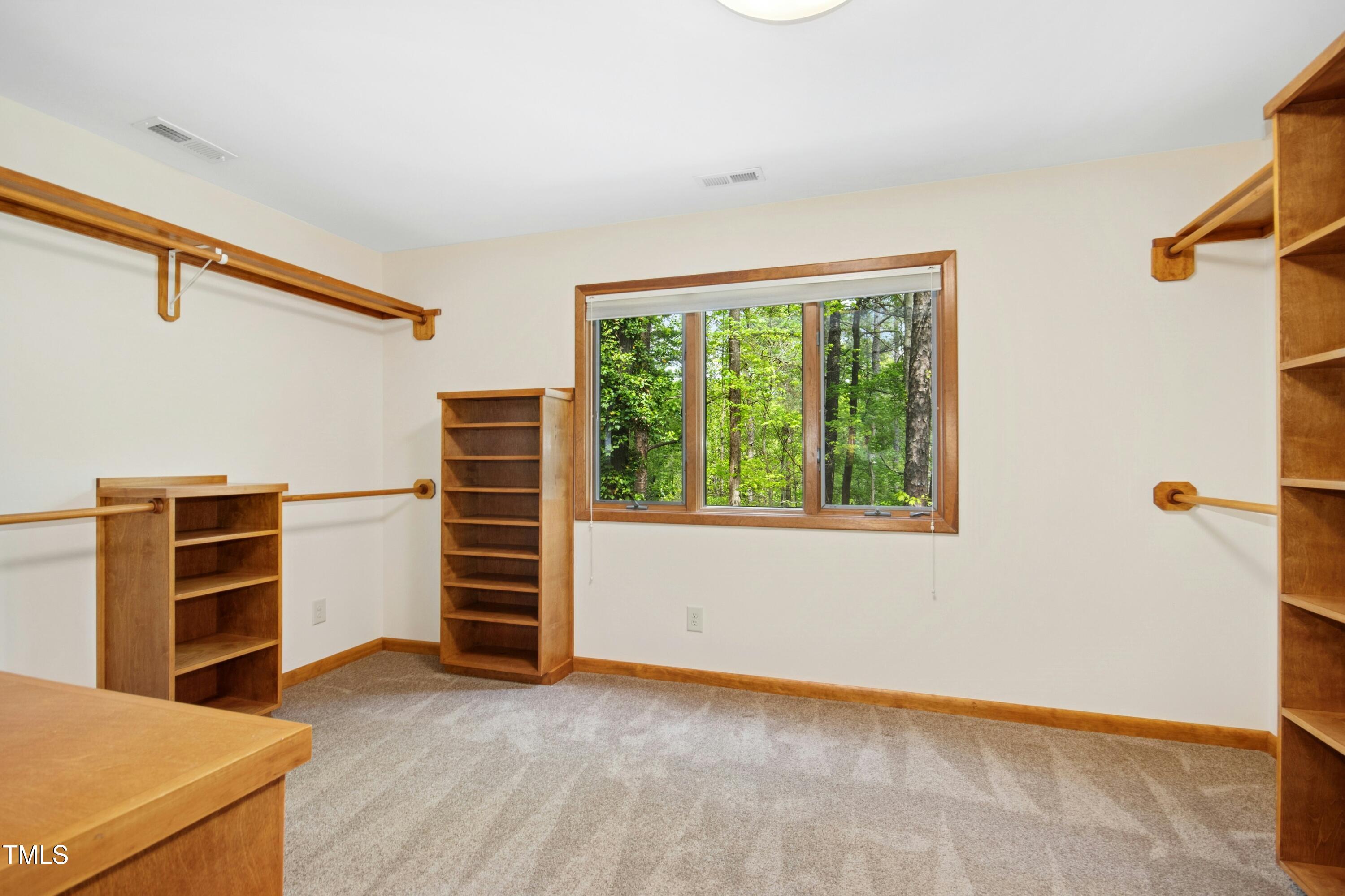 Tranquility awaits you in the primary suite which offers new carpeting, sliding doors to a private veranda, and a gentle color palette awaiting your personal touch. Morning light streams through large casement windows, while the custom walk-in closet features thoughtful organization systems.