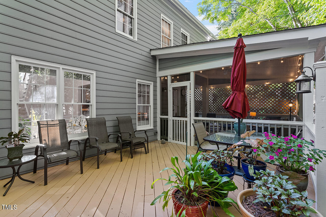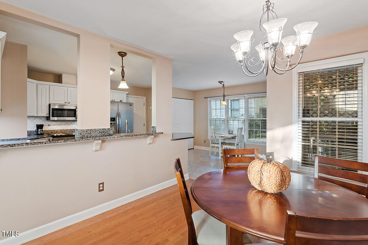 This charming home in North Ridge Square is a standout! It offers a well-thought-out layout with a first-floor owner's suite, featuring a recently remodeled bathroom that's sure to impress. The tall, open-concept living areas enhance the spacious feel, complemented by refinished hardwood floors and a bright, white kitchen with granite countertops. Enjoy meals in the formal dining room or the spacious breakfast nook, which opens up to a huge screened-in porch--perfect for relaxing or entertaining.