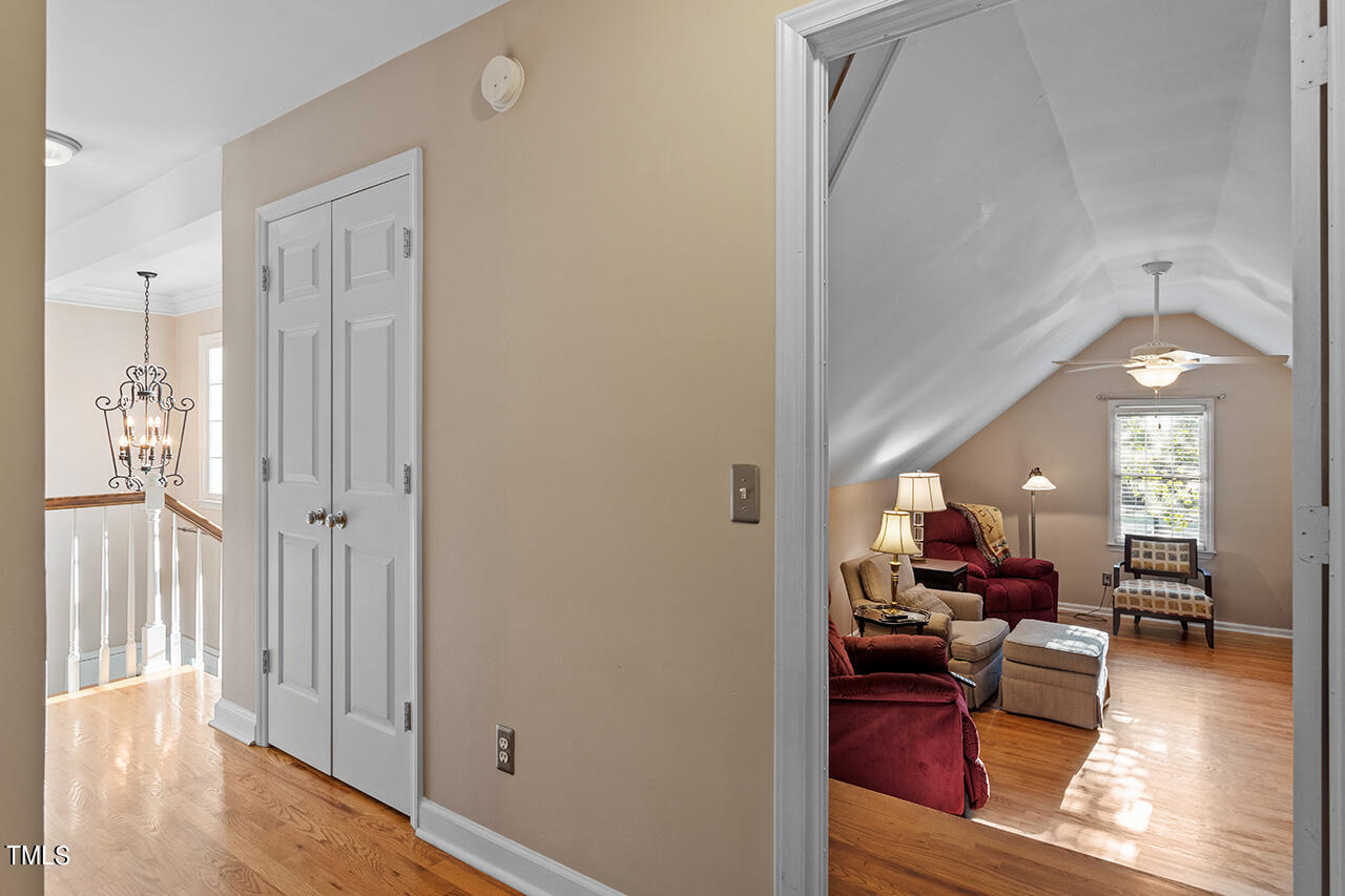 The home boasts minimal yard maintenance for a private feel, with a large deck area for outdoor enjoyment. Inside, the custom open staircase leads to two guest bedrooms with hardwood floors and a sizable bonus room with a step-down feature, adding extra wall space and versatility to the living area. The thoughtful floor plan combines comfort and functionality in a fantastic location.