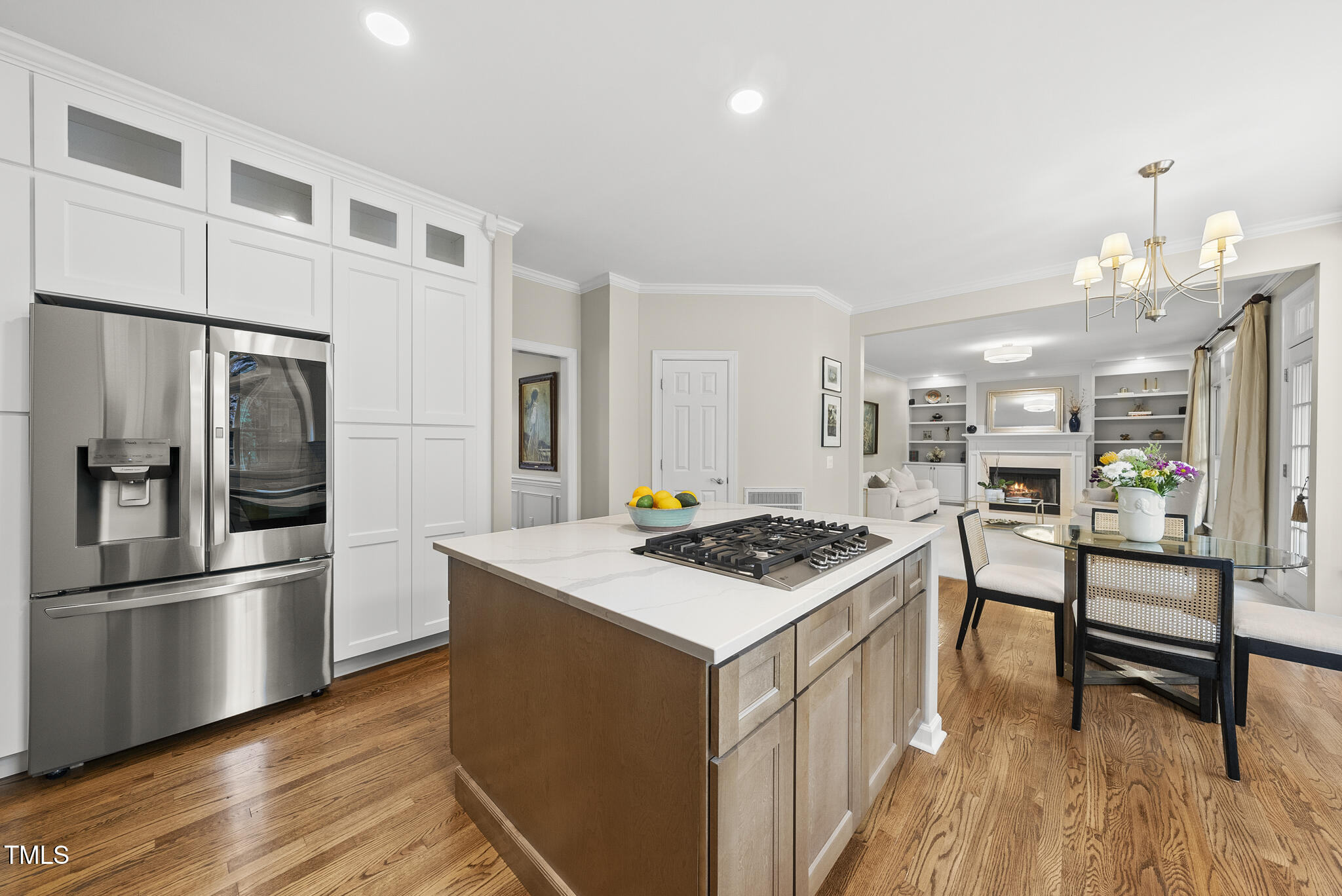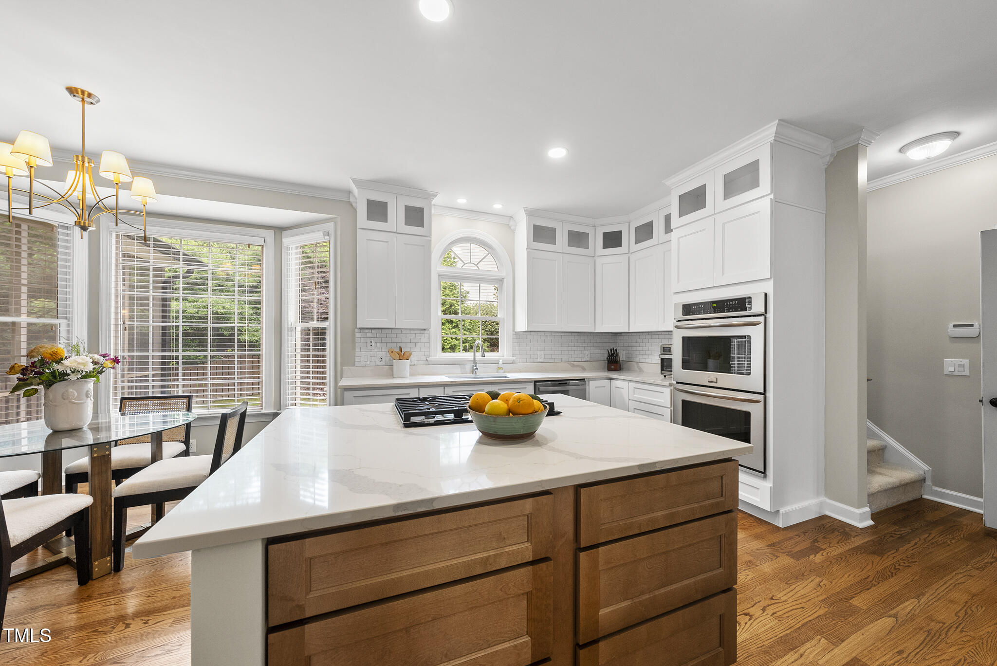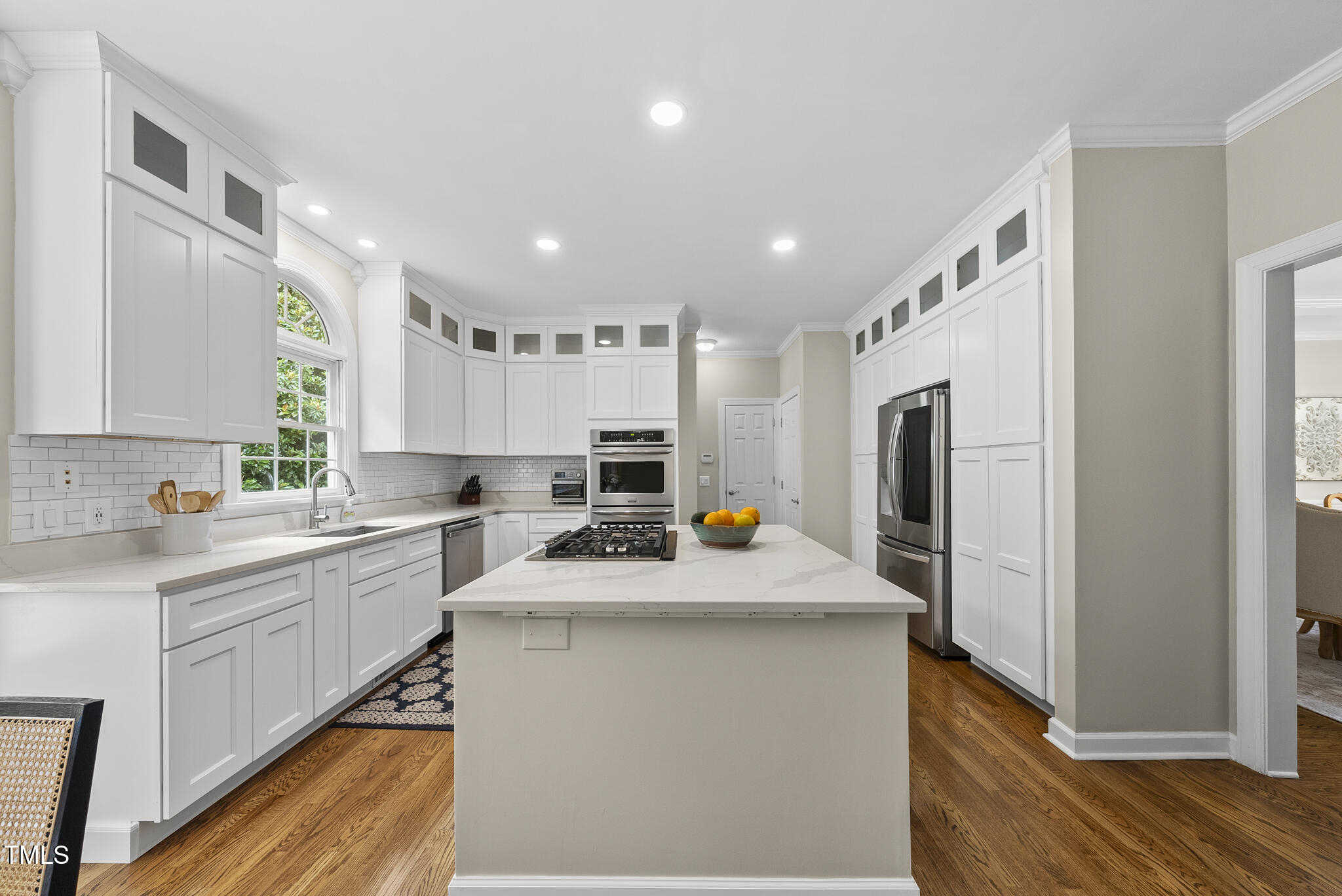 Beautiful brick front home with a must see finished basement in one of Cary's most desirable subdivisions - Preston Village. Set on a large, beautifully landscaped .49 acre lot, the curb appeal is captivating - as is the prospect of hosting gatherings or sporting events on the large, tree lined side yard (right of driveway)! A dramatic two-story entry foyer welcomes you and is framed by an office with built-ins and formal dining room. The family room is immersed with natural light and features a wood burning fireplace with gas ignition encased by custom built-ins. The recently renovated kitchen includes stainless appliances, a center island with gas cooktop, modern white cabinetry, quartz countertops and subway tile. Dual front and rear staircases lead to a second level highlighted by a spacious primary bedroom with tall tray ceilings and an en-suite bath with soaring vaulted ceilings, a jetted tub, all-glass shower, dual vanities and spacious his/hers closets. Enjoy entertaining or multi-generational living thanks to the finished basement where you'll find French doors opening to a large bedroom with direct access to an expansive brick patio, a huge recreation/game room, exercise room and finished storage. Other features include a screened porch with tile flooring and stained wood ceiling, a fenced yard and irrigation system. All HVAC systems recently replaced (23-25), new hot water tank in 2025, new roof in 2021, new front door and many newer windows throughout.