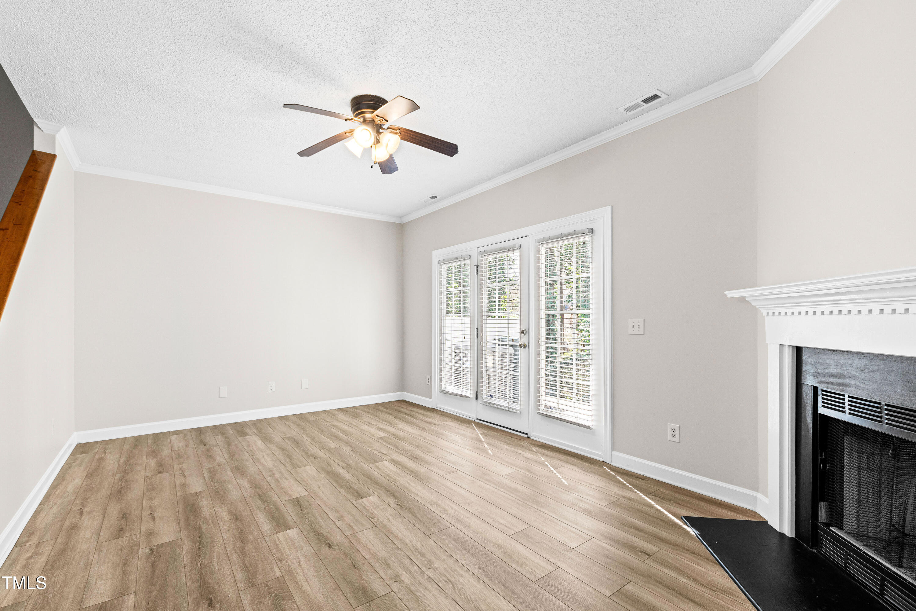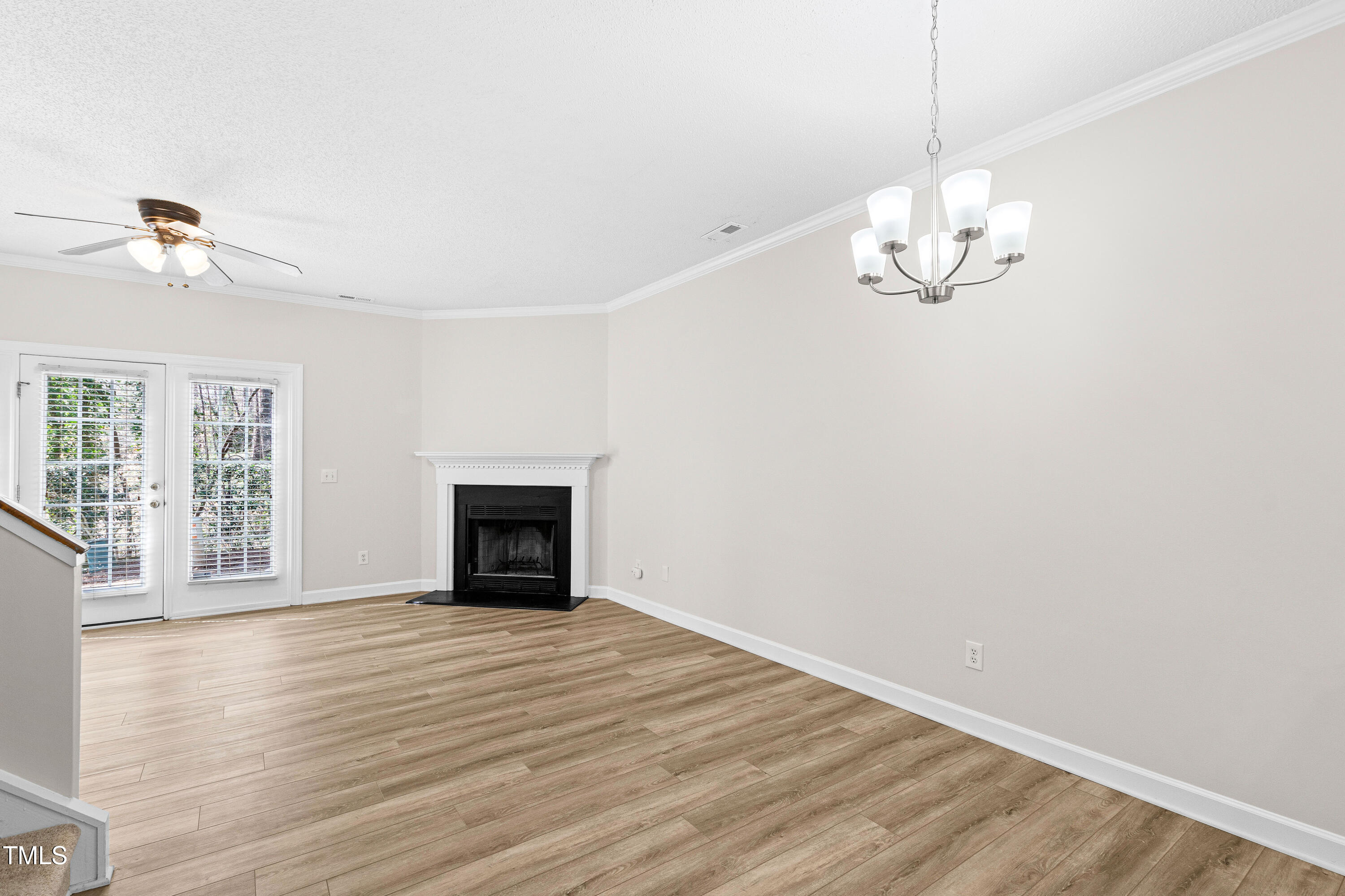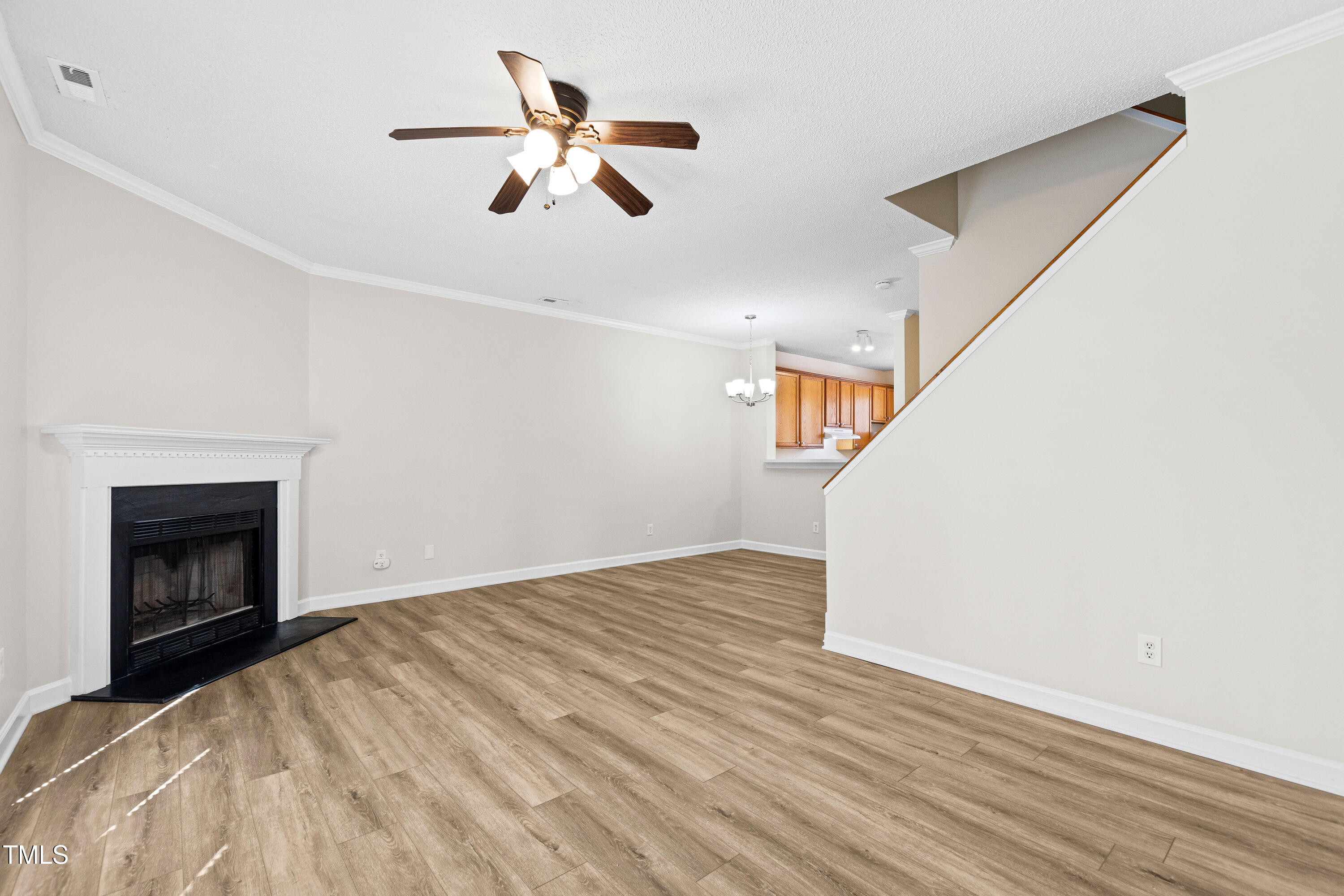 Incredible North Raleigh location and part of the quiet Celebration Square townhomes. Fresh paint, new carpet and LVP flooring, and all new light fixtures in this 3BD, 2.5 BA townhome. The open floor plan has 9' ceilings on the first floor and is airy and spacious. First floor powder room recently updated with new vanity, toilet and lighting. The sunny kitchen and open family room with corner fireplace has French doors leading to a private patio, perfect for day-to-day living and hosting guests. Patio backs up to private HOA common space which adds to extra privacy and peaceful atmosphere. The primary bedroom has a full walk-in closet and attached full bath. Convenient location to midtown for restaurants, shopping and North Hills, as well as to Whole Foods and YMCA for day-to-day activities. Excellent access to 540 and 440. New roof and HVAC in 2021, new dishwasher in 2024. Seller to pay in full the special assessment at closing. The low HOA fees help keep the cost of living down.