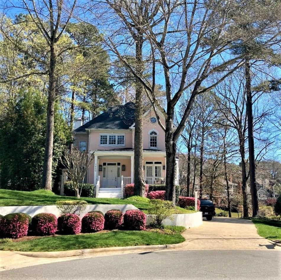 Back on the Market! No fault of the sellers or property. Showings start 6/7. Beautiful home in sought-after, North Raleigh location, Clandon Forest - on a culdesac and backing to the lake - a rare offering indeed! This Charleston-style home w/1st floor open plan was designed to take full advantage of the large lot (.34 of an acre) and stunning lake setting. The welcoming covered porch sets a gracious tone as you enter the expansive, 2-story foyer with living, dining (w/bay window), sunroom, breakfast room and kitchen just beyond. Windows abound offering exquisite views at every turn! The large primary bedroom features multiple windows and ensuite with w/large tub/separate shower, double vanities and generous walk-in closet. There are two further bedrooms, each w/ensuite bath and walk-in closet. In addition, there's a 3rd floor bonus room, huge walk-in attic/unfinished storage, amazing 2-tier deck, side-entry/2-car garage, lower-level home office w/separate entry (unpermitted, detached sqft), and so much more! Please see features sheet for further details.