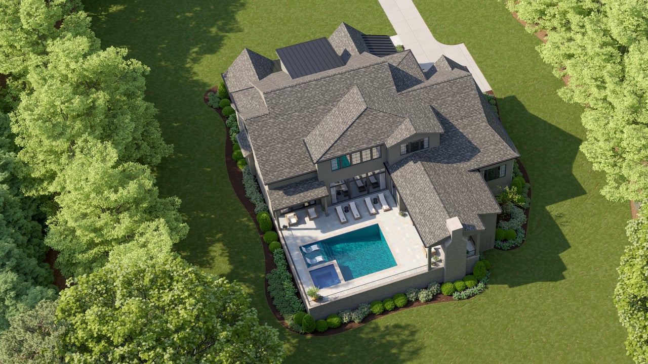 Additional first-floor highlights include a well-appointed guest suite, a functional mudroom, and a three-car garage. Upstairs, three generously sized guest bedrooms each feature direct bath access, alongside a dedicated gym and a versatile recreation room designed for both relaxation and play.