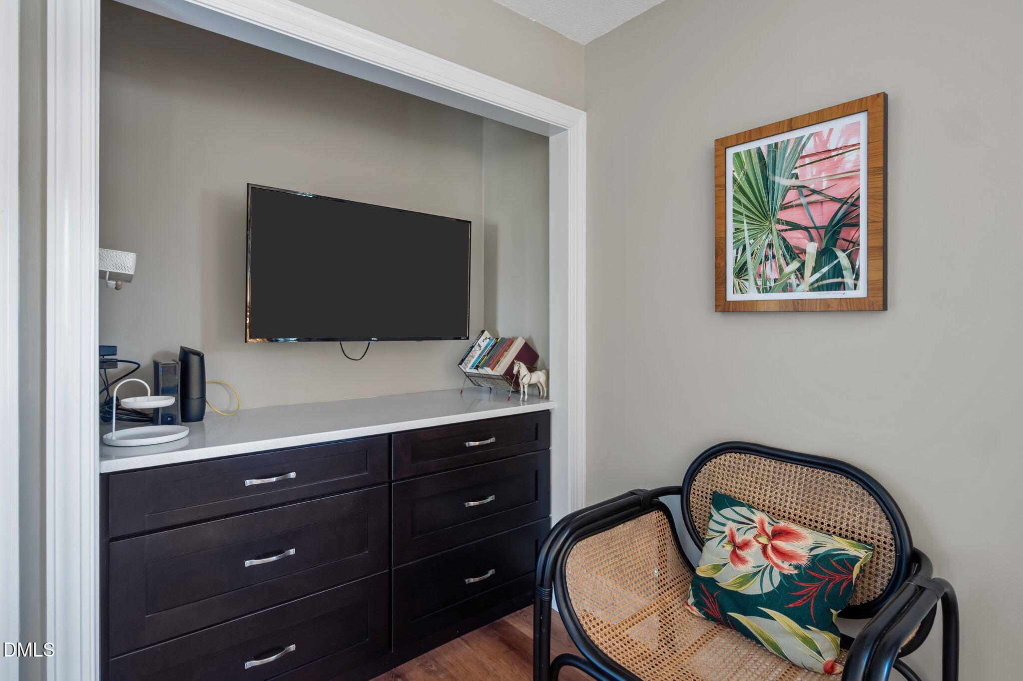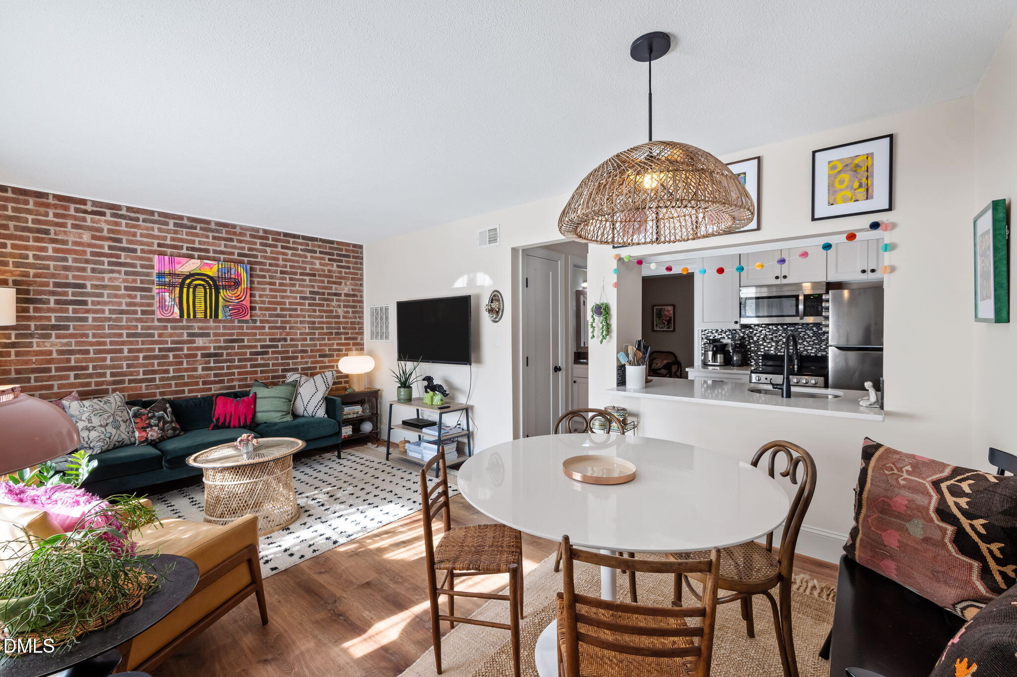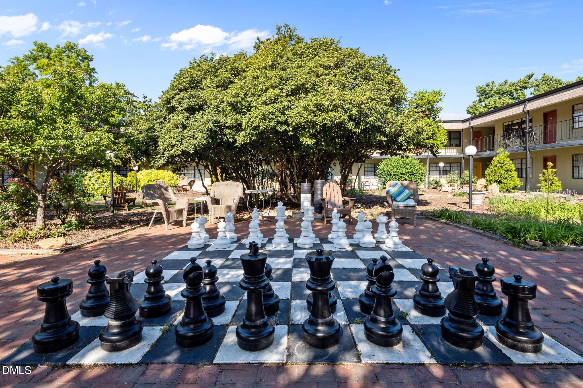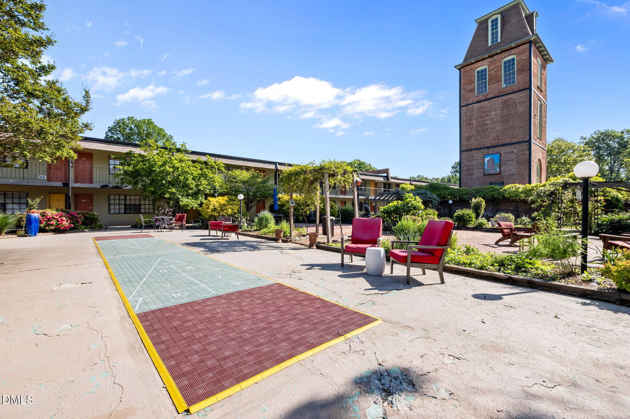 Pearl Mill Flats offers an unbeatable downtown Durham location, walkable to restaurants, bars, the Durham Farmers Market, yoga studios, and just minutes from the DPAC, Duke University and Duke Hospital. This is one of the few condo communities that permits short-term rentals without limits, creating a rare opportunity for Airbnb, mid-term, or long-term investment potential. This impeccably renovated unit was fully updated in 2020, with improved kitchen countertops, cabinetry, appliances, bathroom, flooring, and thoughtfully improved closet storage. Behind secure gated entrances, discover an unexpected urban oasis with lush landscaping, picnic areas, a saltwater pool, and life-size chess and checkers, ideal for both quiet enjoyment and vibrant community gatherings. South Ellerbe Restoration Project is underway across Trinity Ave.