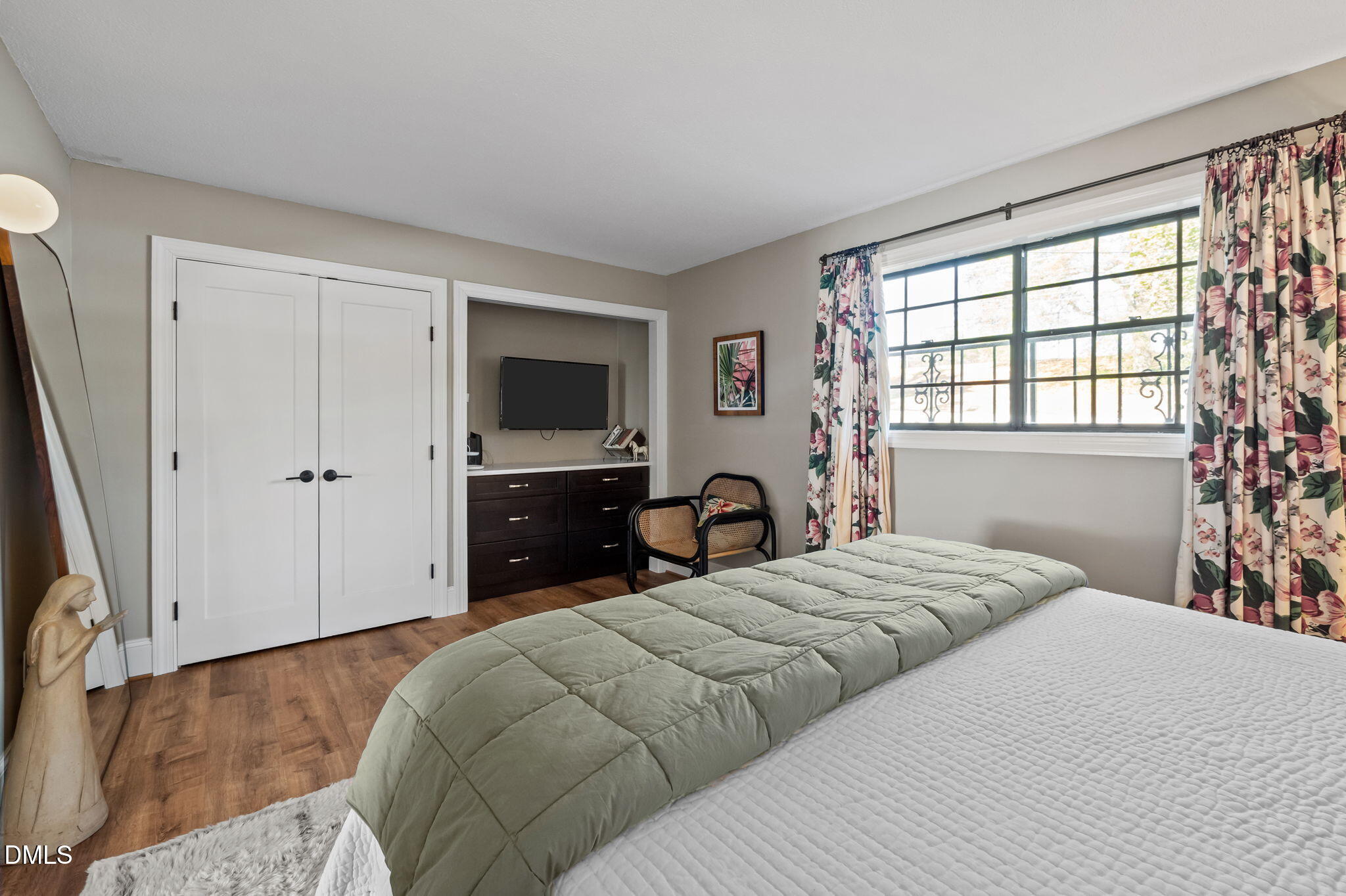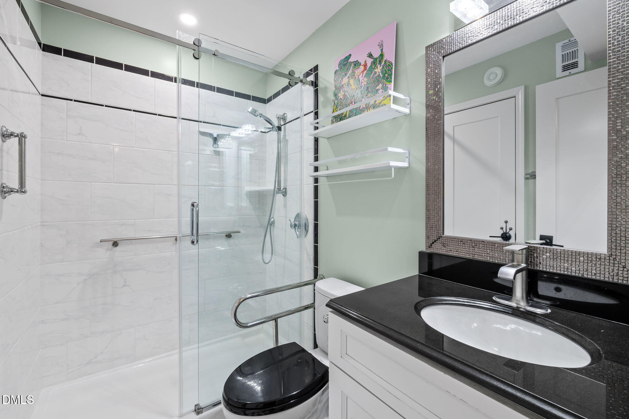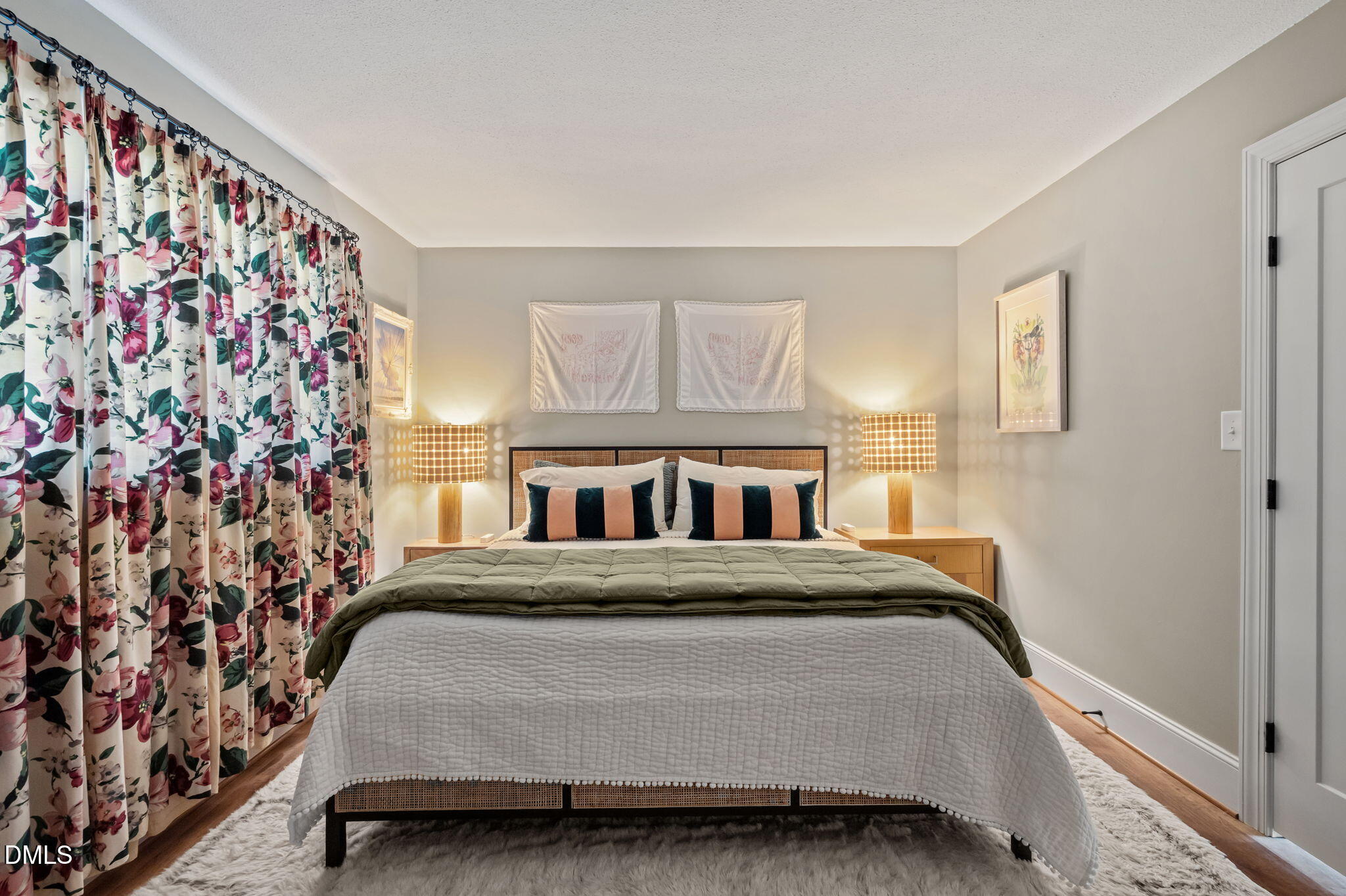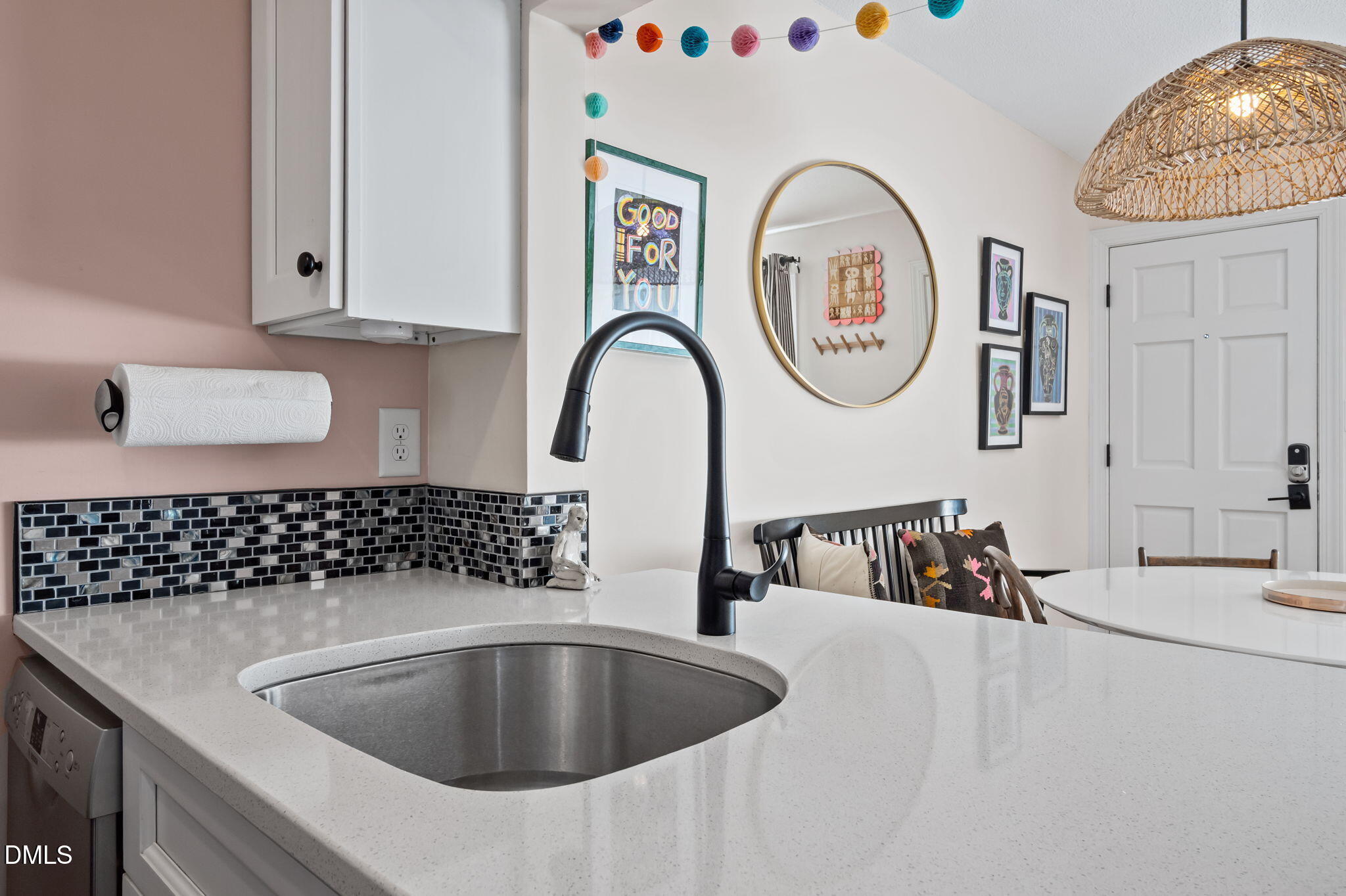 Pearl Mill Flats offers an unbeatable downtown Durham location, walkable to restaurants, bars, the Durham Farmers Market, yoga studios, and just minutes from the DPAC, Duke University and Duke Hospital. This is one of the few condo communities that permits short-term rentals without limits, creating a rare opportunity for Airbnb, mid-term, or long-term investment potential. This impeccably renovated unit was fully updated in 2020, with improved kitchen countertops, cabinetry, appliances, bathroom, flooring, and thoughtfully improved closet storage. Behind secure gated entrances, discover an unexpected urban oasis with lush landscaping, picnic areas, a saltwater pool, and life-size chess and checkers, ideal for both quiet enjoyment and vibrant community gatherings. South Ellerbe Restoration Project is underway across Trinity Ave.