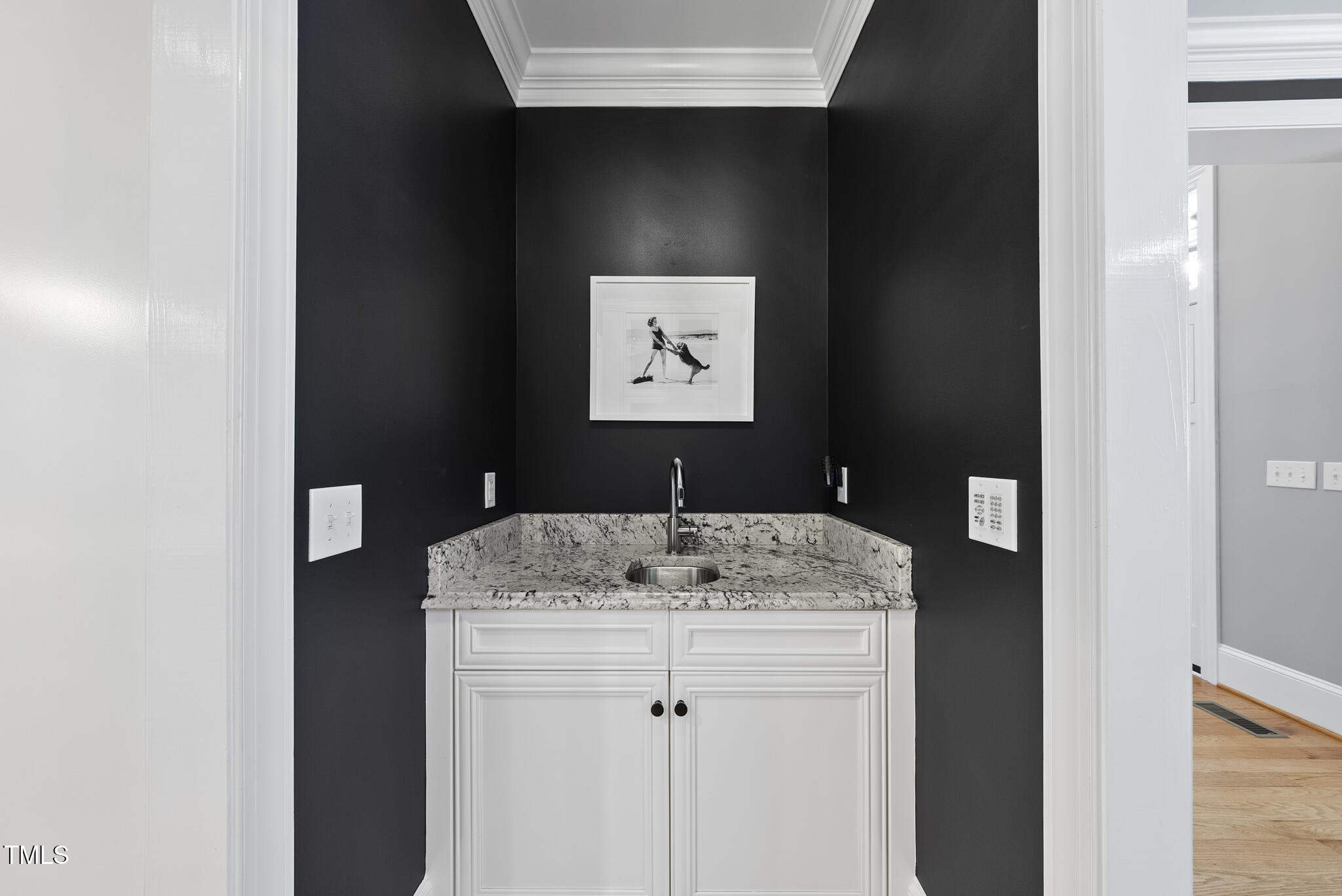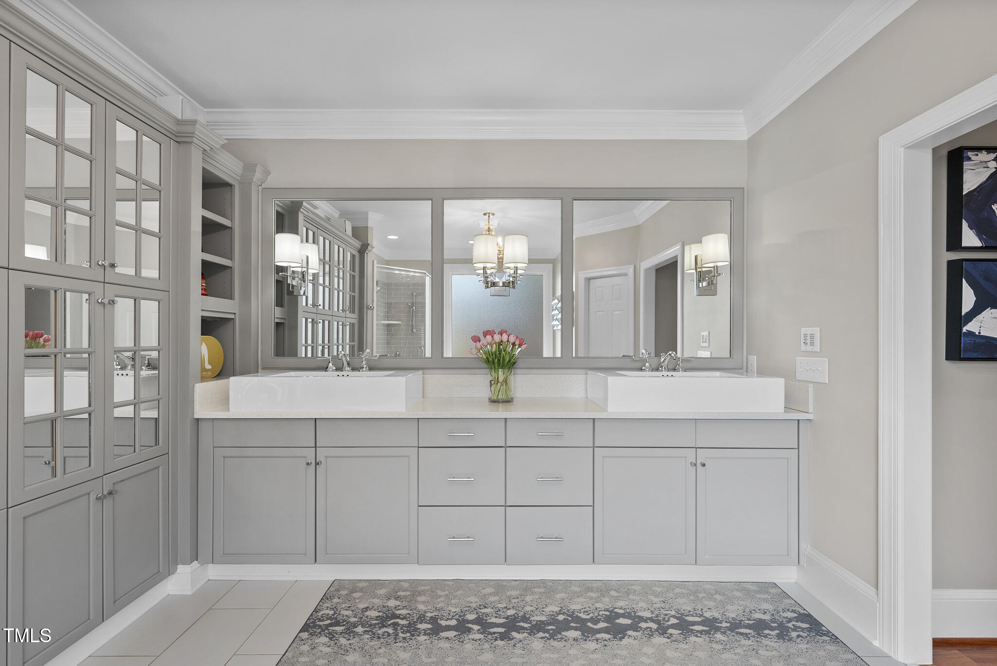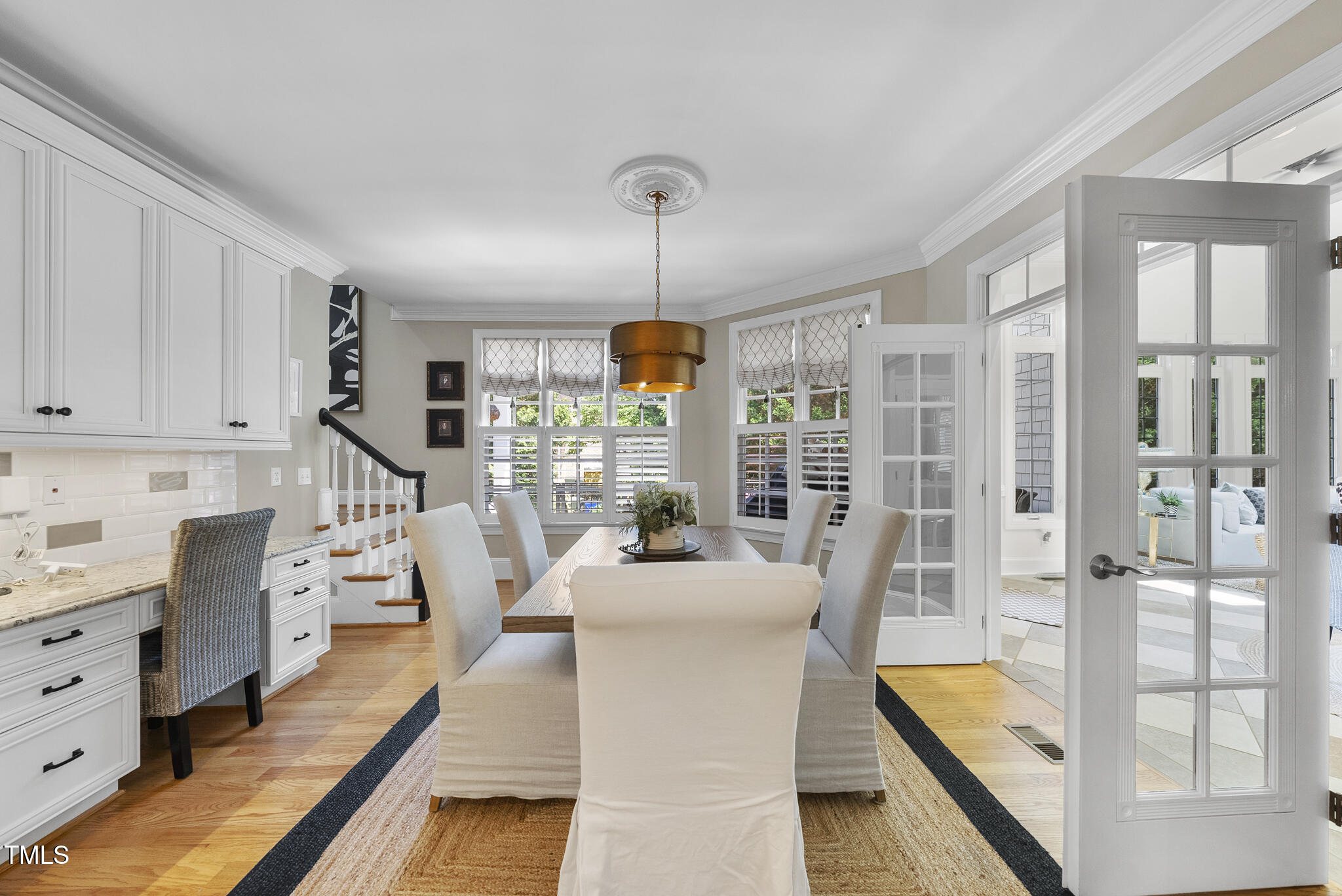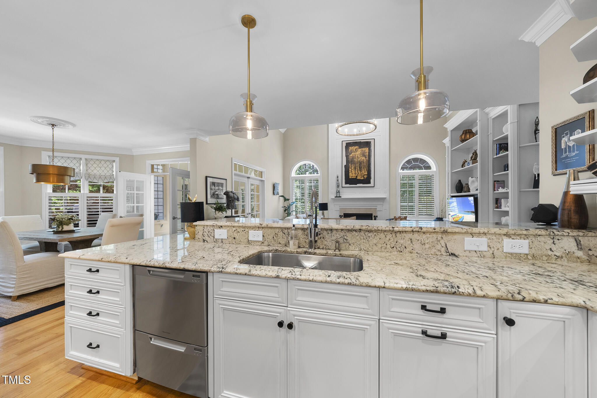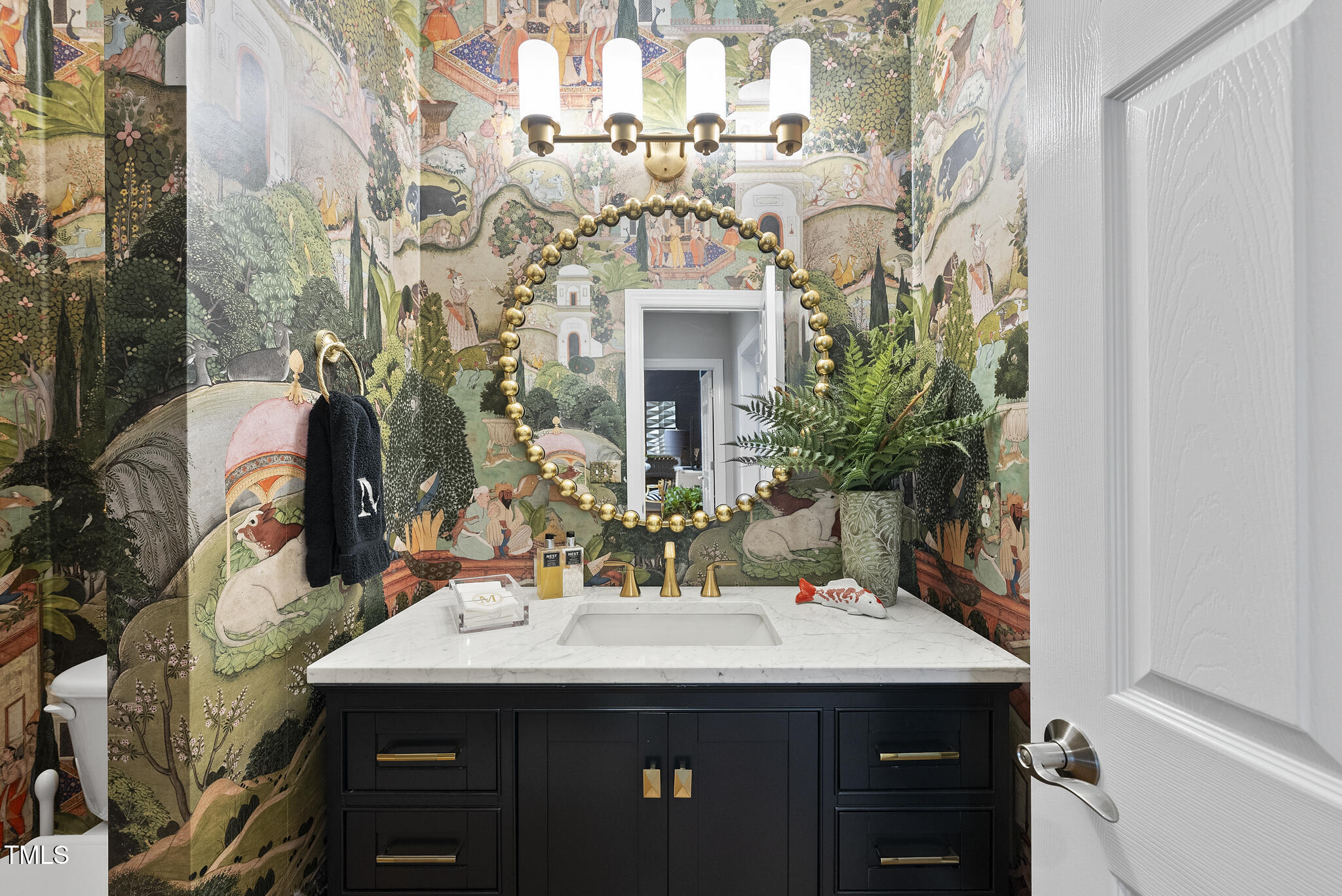 Step inside to a dramatic two-story foyer that sets the tone for the custom details found throughout. The main level features gorgeous hardwood floors, custom plantation shutters, built-in audio and Minka Aire ceiling fans (except for in the sunroom). The cathedral-ceiling study offers a quiet, inspiring workspace with a floor-to-ceiling wall of built-ins and a cozy fireplace.