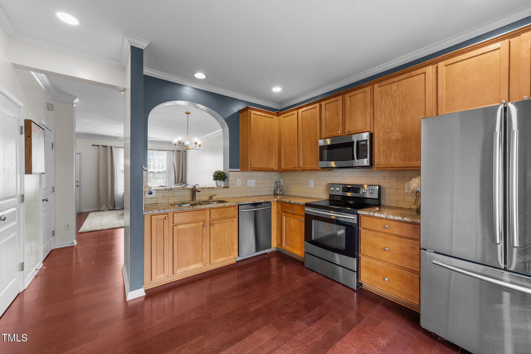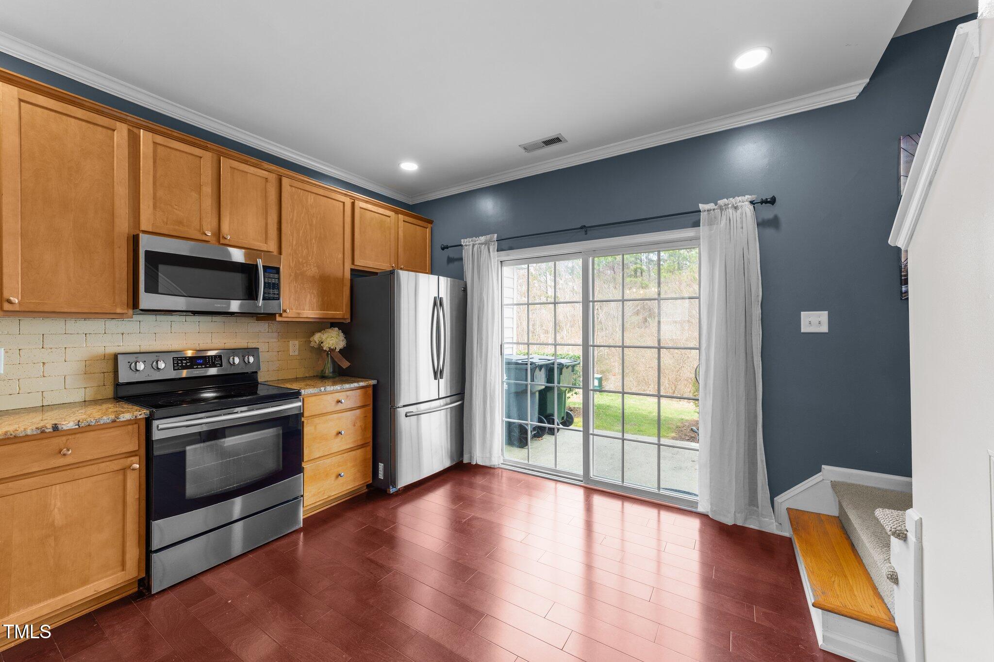 On the first floor you will find beautiful engineered hardwood floors, crown and picture molding and a updated quartz fireplace wall. The kitchen boasts stainless steel appliances, level 4 granite counter tops and 42 inch maple cabinets. Half bath downstairs has been updated with a furniture style vanity.