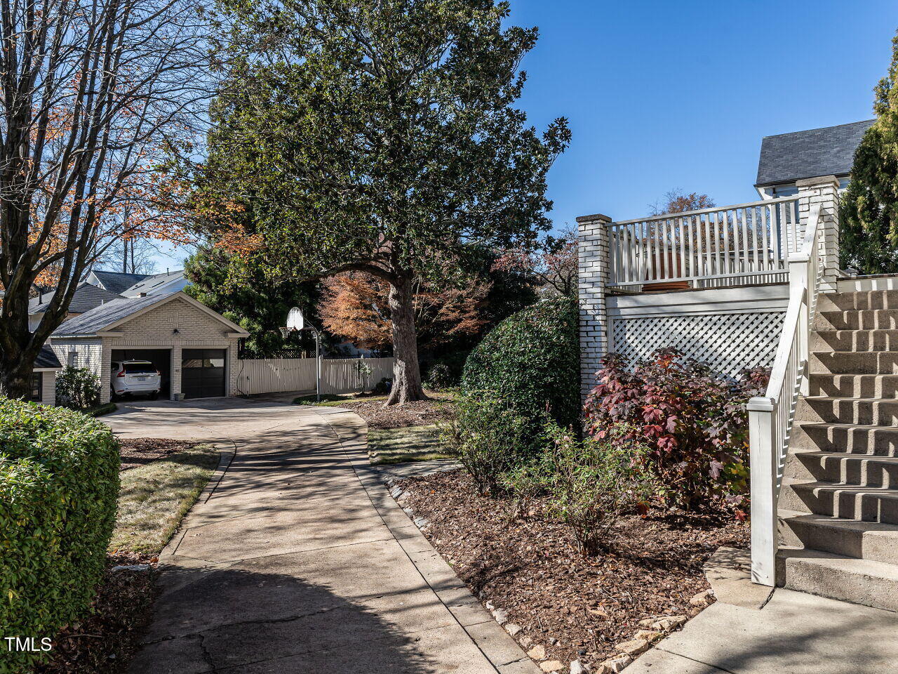 Hayes Barton gem! Georgian brick two-story with slate roof graced by a .50-acre well-landscaped yard - the light-filled, center hall design features a 3-level staircase flanked by gorgeous formal areas with French doors leading to side covered porches (open + screened) - behind the entrance hall is the warm, inviting den with wet bar that adjoins the renovated kitchen and breakfast nook, complete with floor-to-ceiling cabinets and and access to the spacious deck - the period charm is further enhanced by the generously proportioned spaces, 9'4'' ceilings (8'5'' upstairs), exquisite moldings/built-ins, and plantation shutters throughout - the second floor includes 4 bedrooms and 2 updated baths plus study/family room - the open stairwell leads to the partially finished third floor (laundry room finished - 184 sq ft) - functional, unfinished basement with. interior and exterior access - the winding concrete driveway flows to the brick two-car garage (19x19) with tongue-n-groove paneling - excellent schools - awesome neighbors -