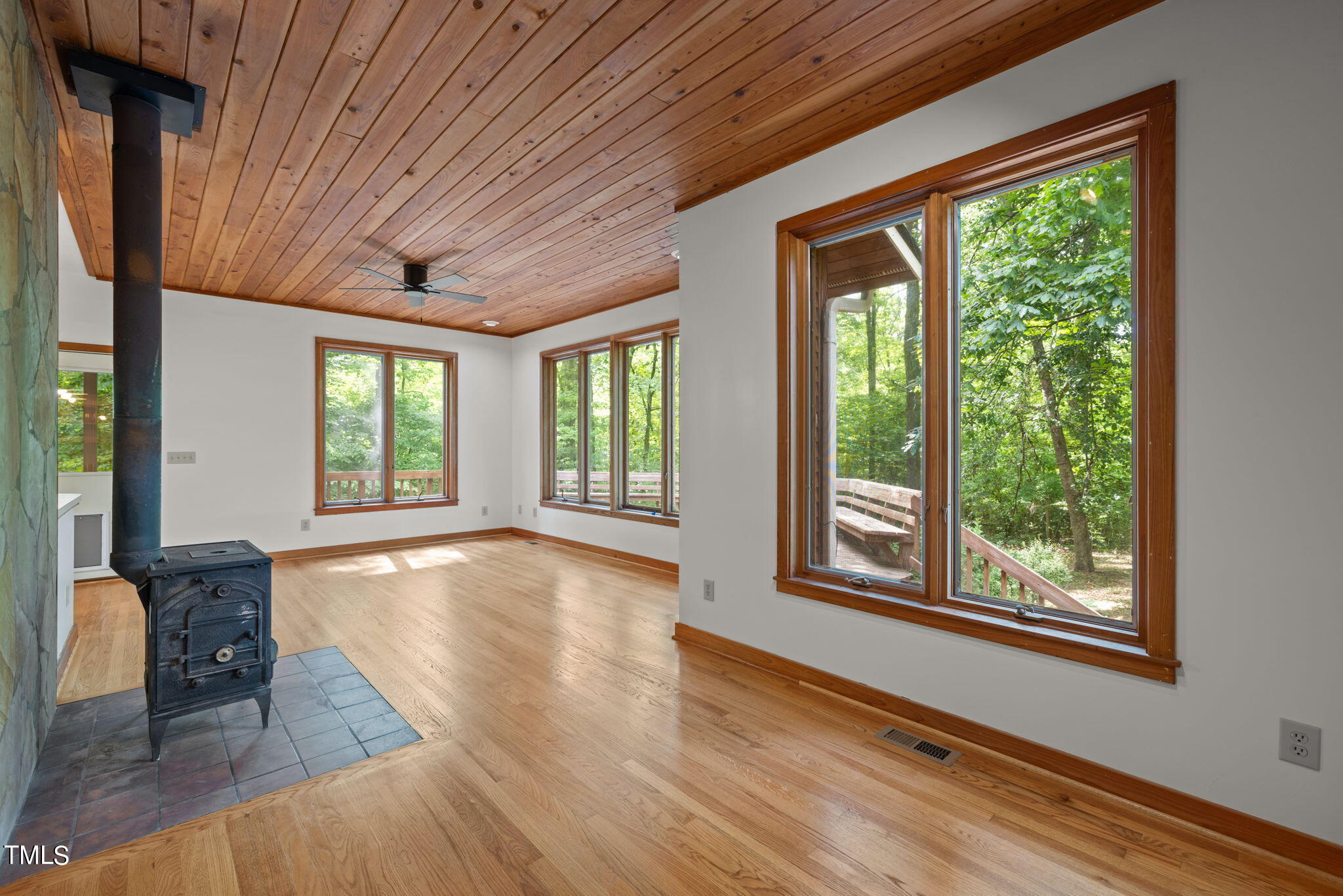 Welcome to your private country haven nestled on 10 acres. This charming property offers the perfect blend of tranquility, space, and functionality. Embrace your green thumb and cultivate your own oasis with established perennials, garden space and large shed. Located in peaceful rural Chatham County, this solid one level home with 3 bedrooms and 2 bathrooms, boasts a brand new roof, freshly painted interior, beautiful refinished hardwood floors and spacious deck.